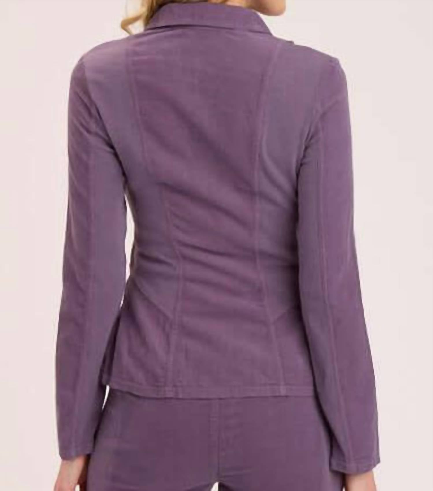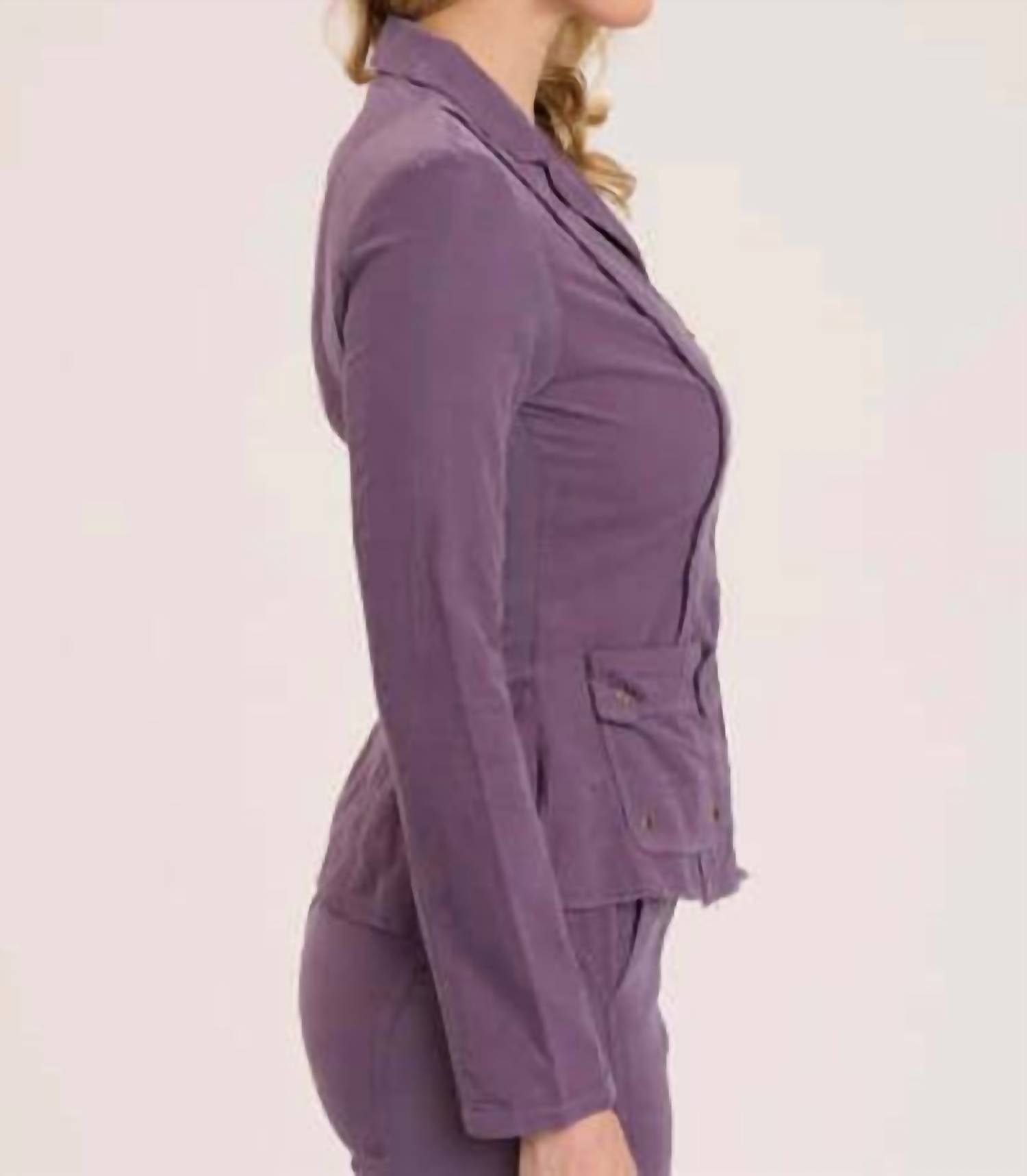 Um blazer tão versátil que você pode usá-lo no escritório ou combiná-lo com jeans para um visual mais casual. Apresentamos o Blazer Cord Raphael da XCVI, uma peça ousada e marcante em roxo intenso, confeccionada em veludo cotelê 100% algodão. Este blazer feminino possui mangas longas e um decote diferenciado, realçado por painéis contrastantes em tecido misto, ilhós nas bordas dos bolsos e botões de pressão em latão. Possui um prático fecho de zíper. Fácil de cuidar, seguindo as instruções de lavagem à máquina.