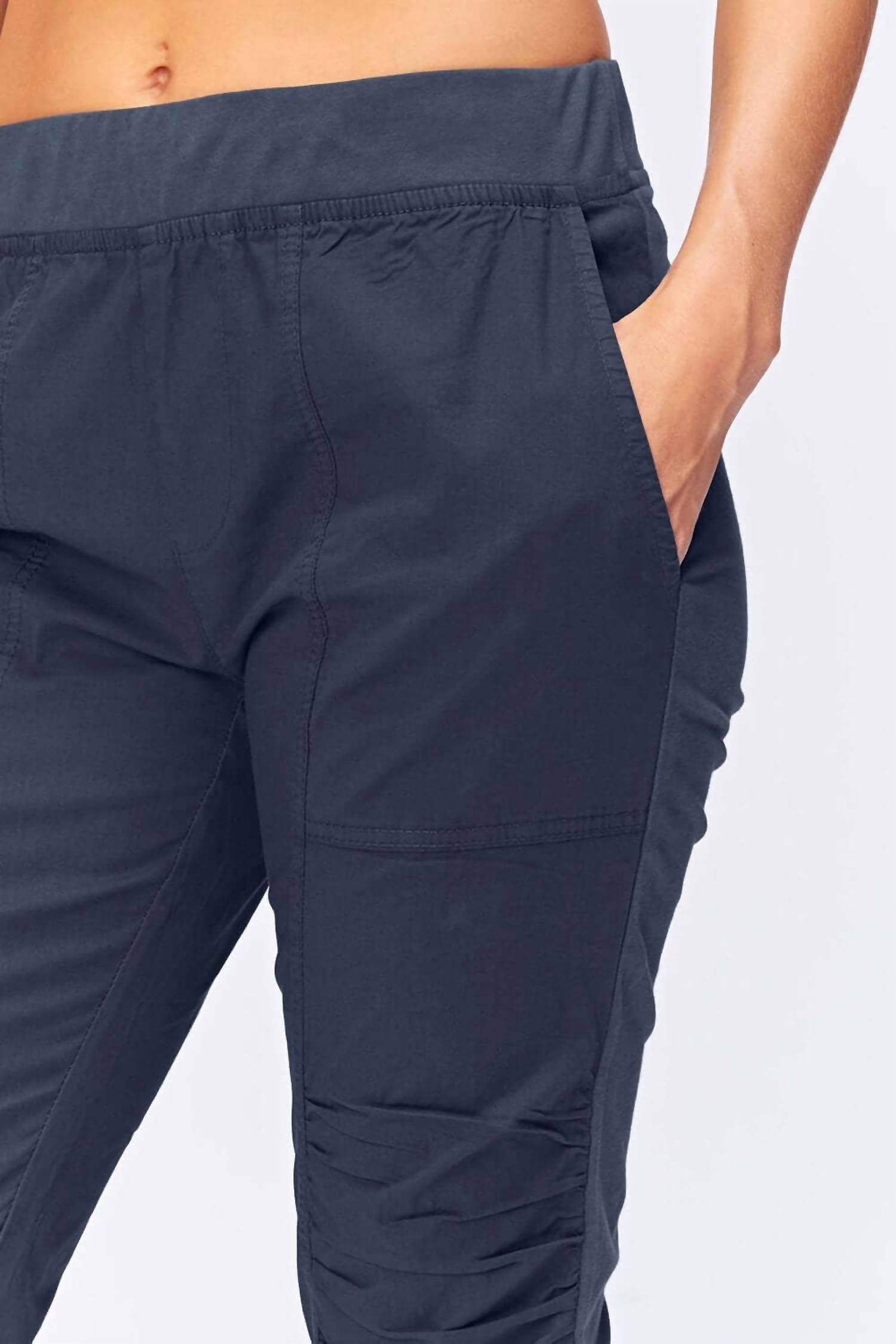 Descubra a refinada Calça Crop Geyser da XCVI, desenhada em um tom azul-marinho sólido para um estilo minimalista de primavera. Esta calça cropped feminina oferece um design afunilado com franzido na parte frontal, dois bolsos frontais e confortáveis apliques laterais em jersey. Confeccionada em 96% algodão e 4% elastano, esta calça promete conforto e elasticidade. Fechamento: Cós elástico com fecho. Cuidados: Lavar à máquina e secar na secadora.