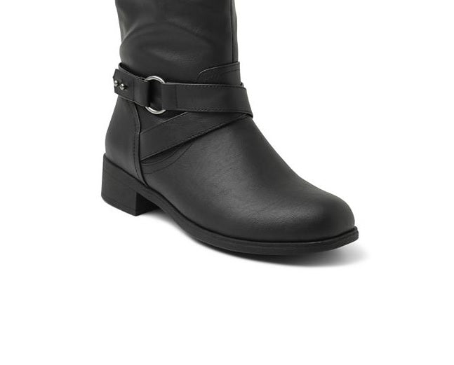 Tira dupla no tornozelo. Largura da panturrilha larga | Fecho de zíper interno | Tira de fivela dupla no tornozelo