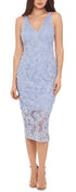 O vestido de comprimento midi está em alta | e a XSCAPE realça a beleza do look com este lindo modelo de renda | finalizado com bainha peek-a-boo. | Aproximadamente 123 cm de comprimento, do centro do pescoço até a bainha. O comprimento é baseado no tamanho 4 e varia de 1 cm entre os tamanhos | Decote em V com alças finas; silhueta midi | Zíper traseiro oculto com fecho de colchete