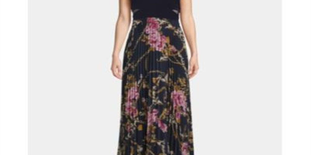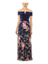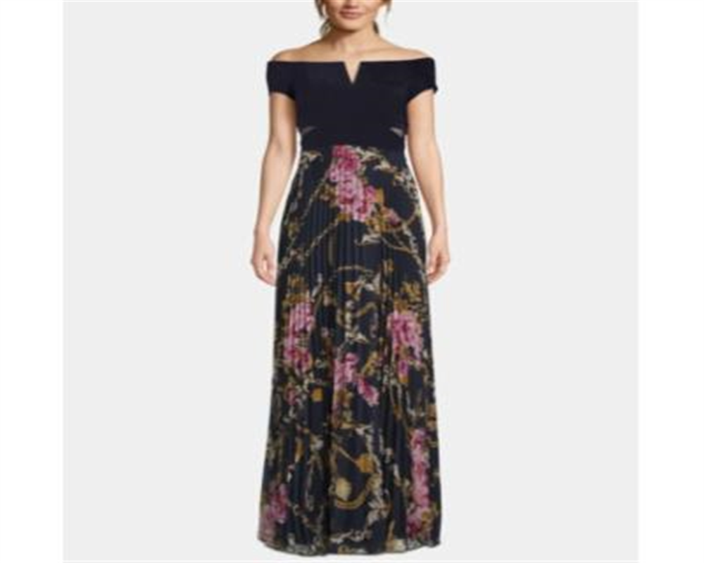 Vestido formal feminino Xscape estampado, manga curta, ombro de fora, comprimento total, azul, tamanho 2