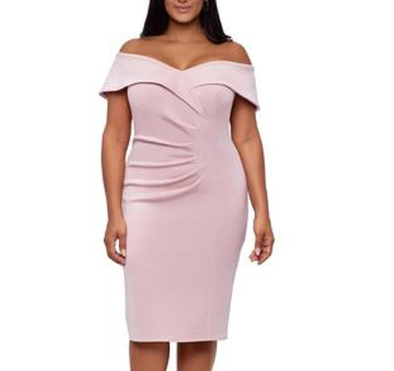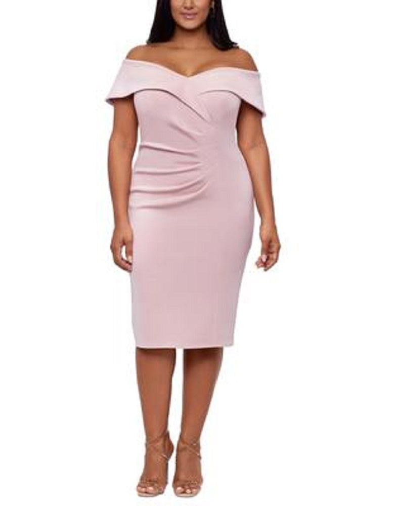 Fique simplesmente fabulosa com este vestido glamouroso de ombros à mostra da XSCAPE | franzido na cintura para um formato assimétrico. | franzido na cintura | fecho de zíper oculto nas costas | forrado | importado | crepe Scuba; elástico e com suporte