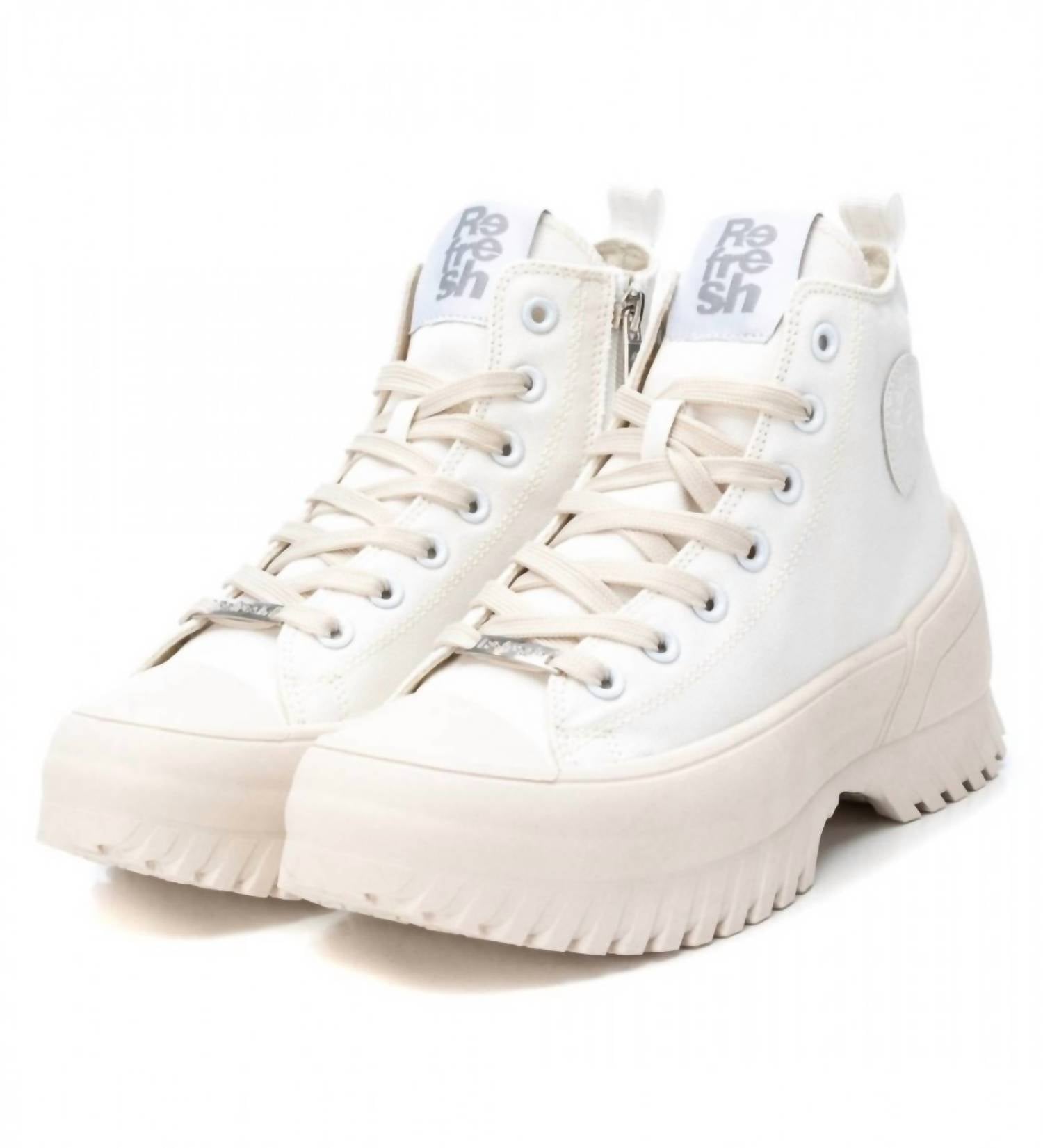 Bonitos, funcionais e confortáveis. Estes tênis atendem a todos os requisitos. Feitos de lona, com zíper lateral e cadarços ajustáveis. Fechamento em zíper lateral. Solado de borracha antiderrapante. Plataforma de 4 cm.