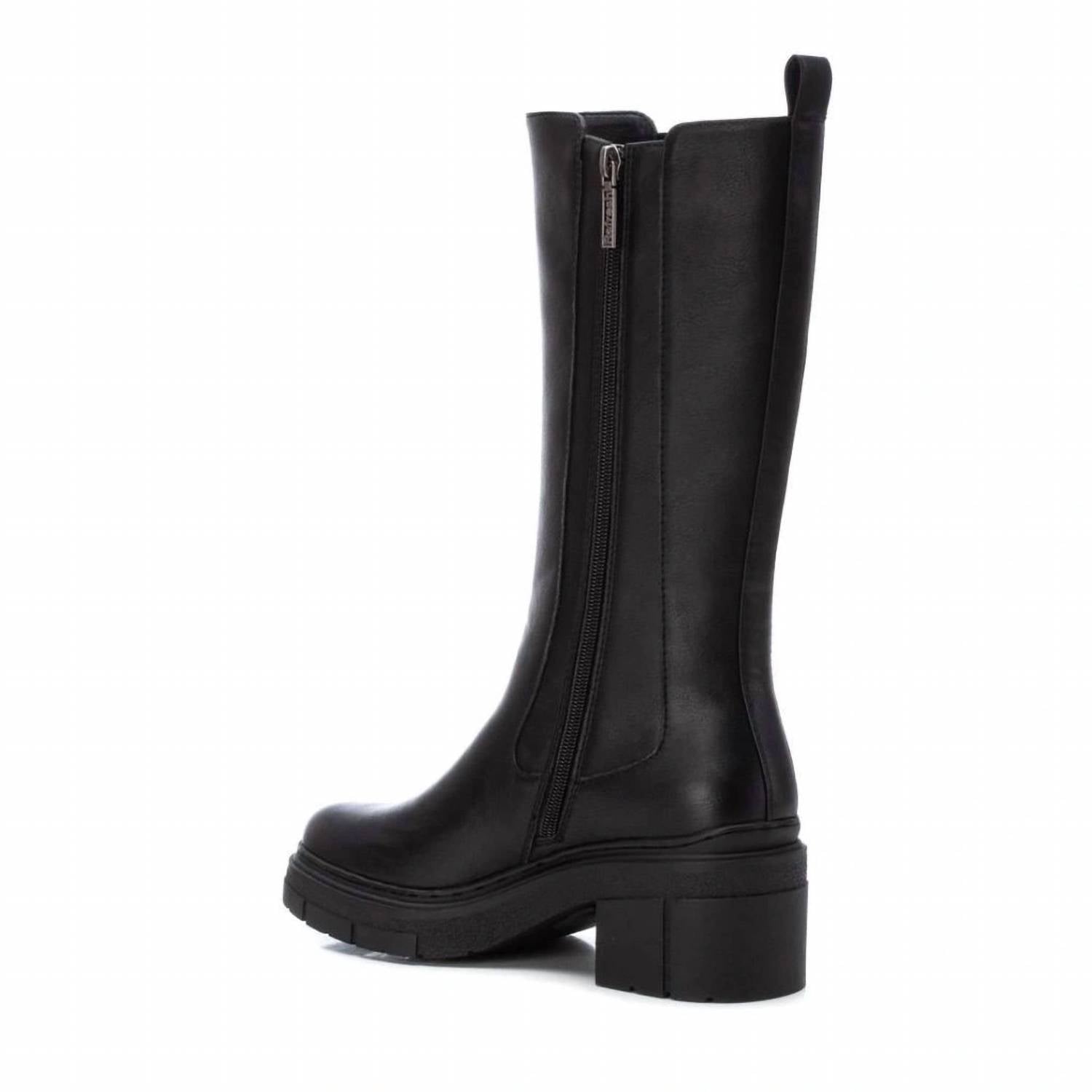 Feito de material que imita a pele. Fechamento lateral com zíper. Solado de borracha leve e antiderrapante. Salto de 6 cm.