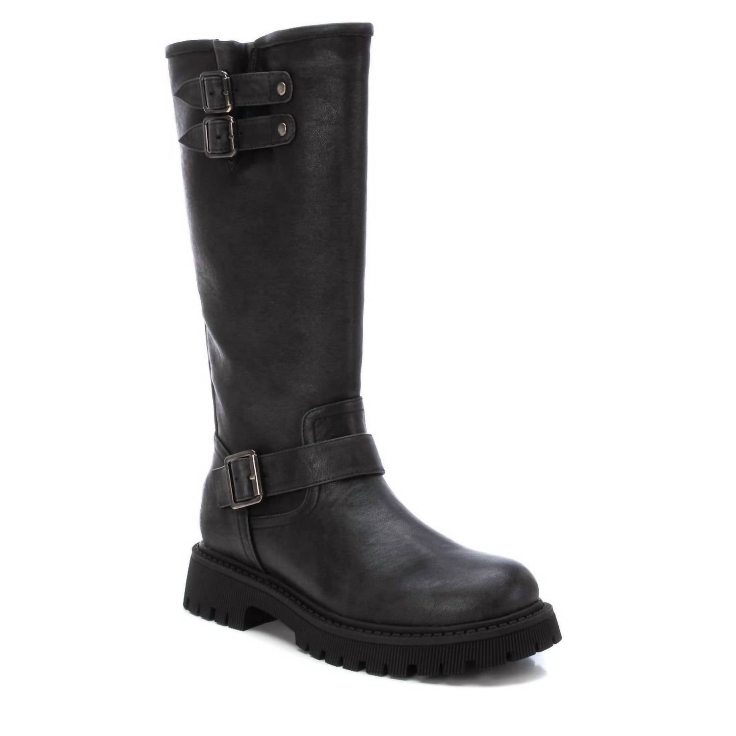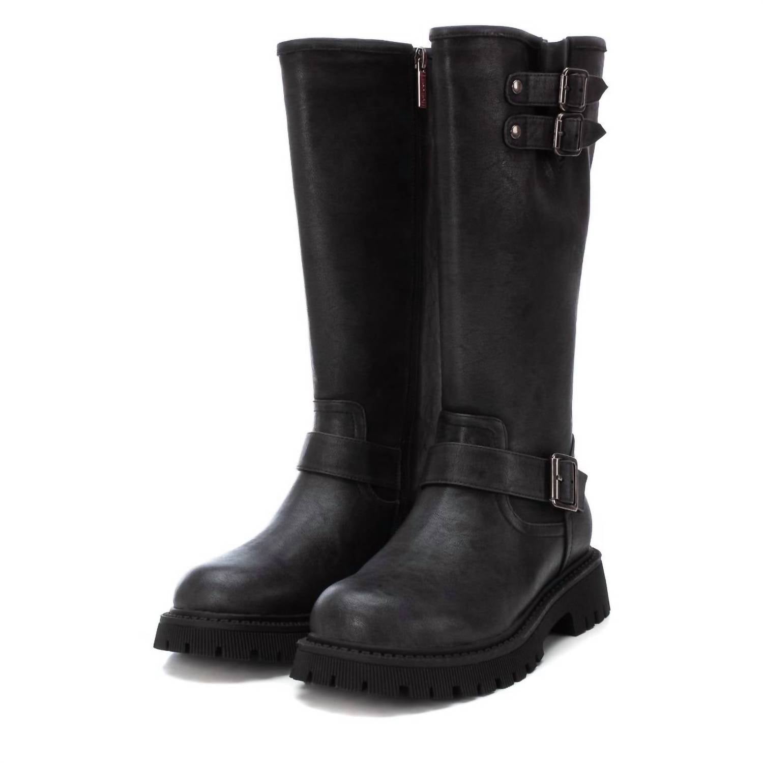 Uma bota estilosa com ajuste confortável e altura ideal. Estas botas clássicas são o complemento perfeito para qualquer look e podem ser usadas em qualquer estação. Esta bota casual apresenta salto bloco de 5,9 cm, bico arredondado e fecho de zíper lateral com fivelas decorativas. Confeccionada em couro sintético, possui solado de borracha antiderrapante e palmilha acolchoada para conforto o dia todo.
