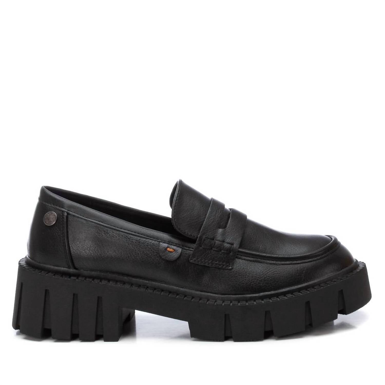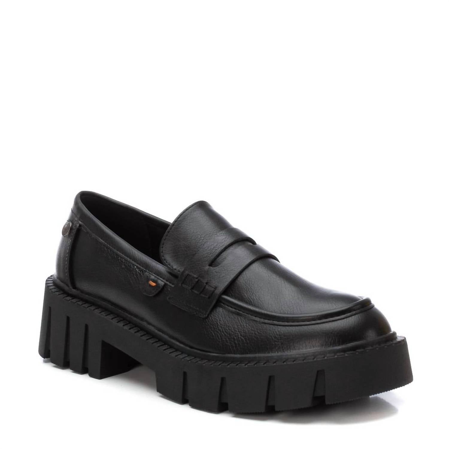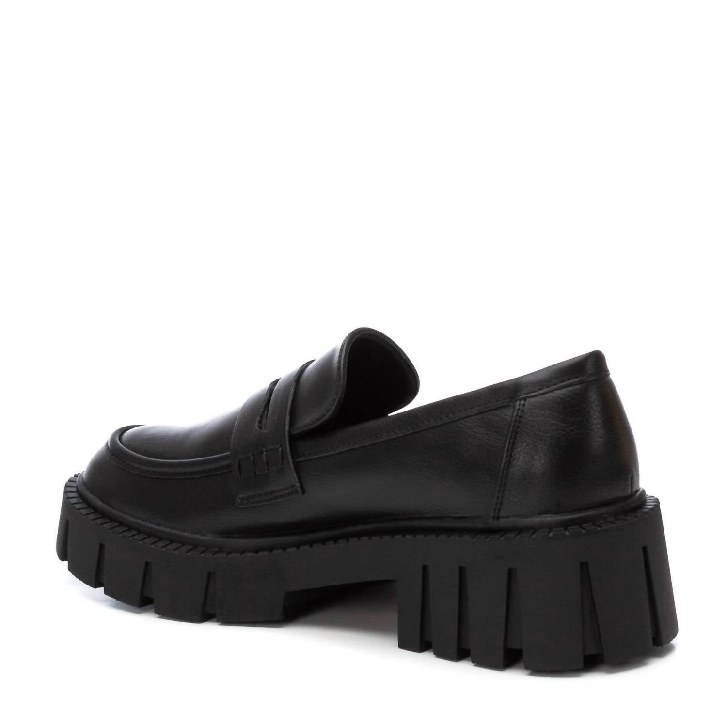 Este mocassim casual apresenta salto grosso de 5 cm, bico arredondado e design slip-on para facilitar o calce. Feito de couro sintético com solado de borracha antiderrapante e palmilha acolchoada, oferece conforto e durabilidade para uso o dia todo.