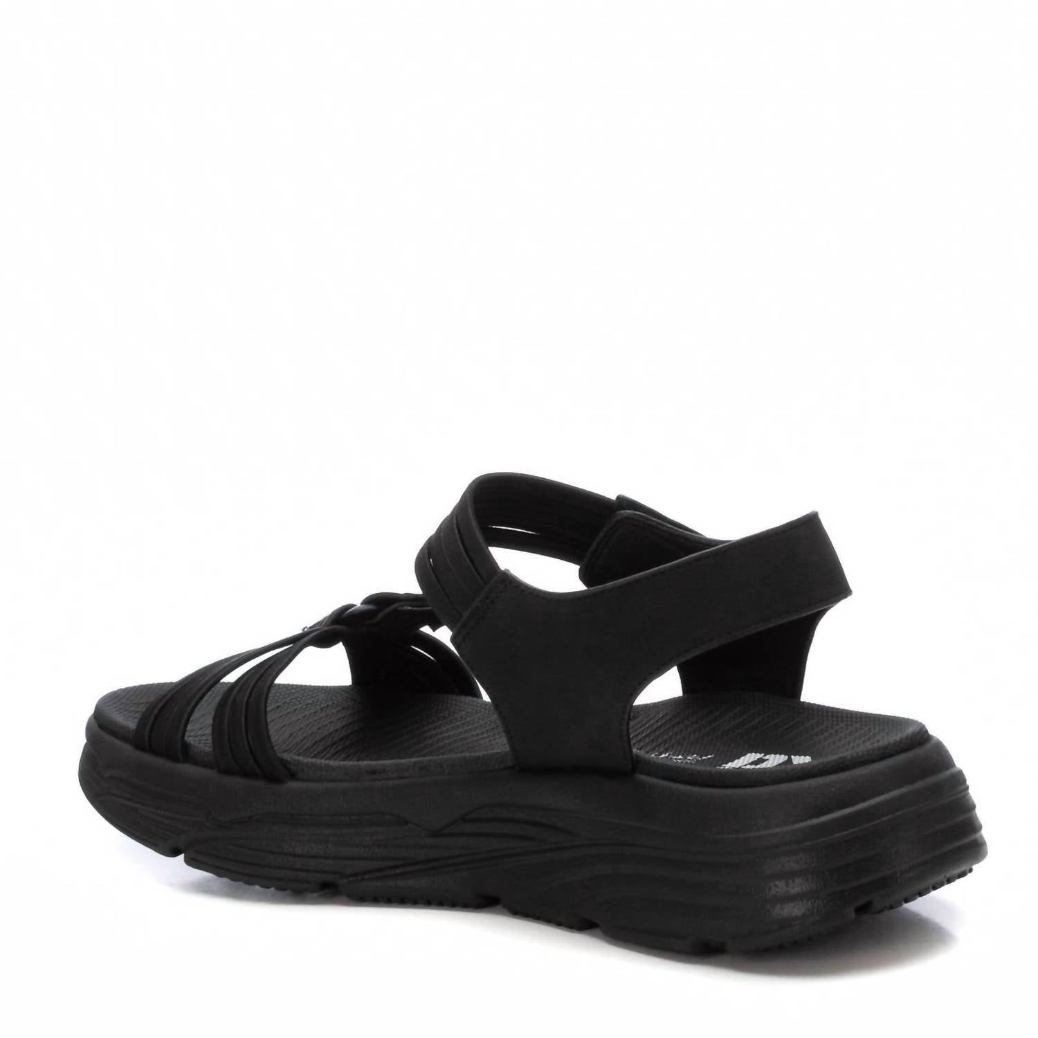 Clássico e fofo, perfeito para usar o dia todo. Adoramos esta sandália. Apresentamos as Sandálias Femininas da Xti, uma mistura de estilo e conforto, pensada para mulheres modernas. Com tiras elásticas em tecido combinadas com um material sintético similar ao couro, estas sandálias proporcionam um ajuste confortável e um solado esportivo e antiderrapante. Com fecho de velcro para maior praticidade, elas apresentam um estilo casual ideal para o dia a dia. As sandálias vêm na versátil cor preta, perfeitas para adicionar um toque casual e moderno a qualquer look.