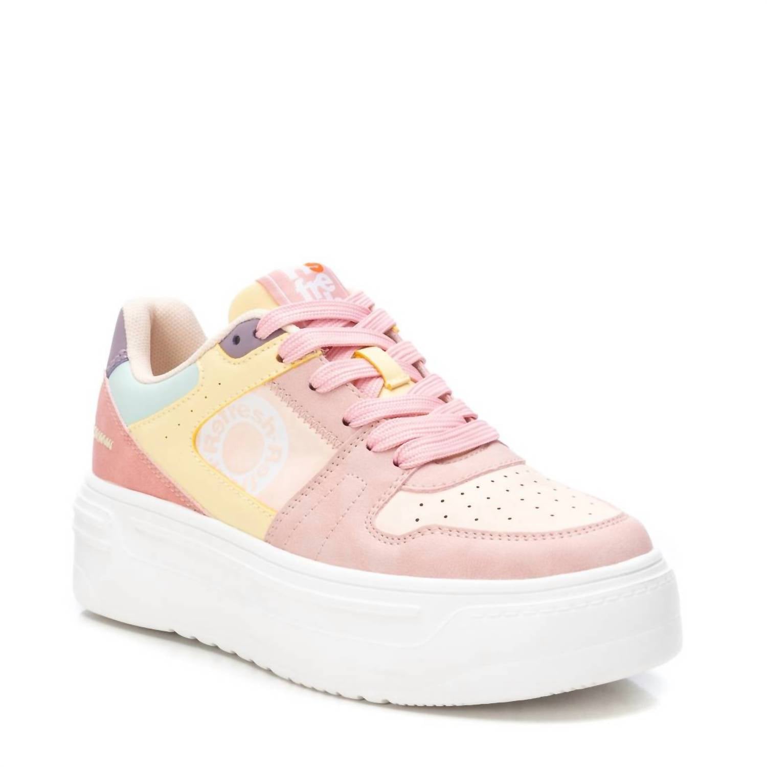 Bonitos, funcionais e confortáveis. Estes tênis atendem a todos os requisitos. Saia com estilo com o Tênis Casual Feminino Xti, projetado para combinar moda e conforto com perfeição. Em uma cor nude chique, este calçado apresenta um design de plataforma moderno e bico arredondado, confeccionado em poliéster de alta qualidade. A palmilha Comfortech garante um uso confortável ao longo do dia, enquanto o solado leve e antiderrapante proporciona estabilidade em movimento. Feito sob medida para mulheres adultas, este tênis é uma adição versátil ao seu guarda-roupa, orgulhosamente produzido pela Xti sem salto, para um estilo chique e descontraído.