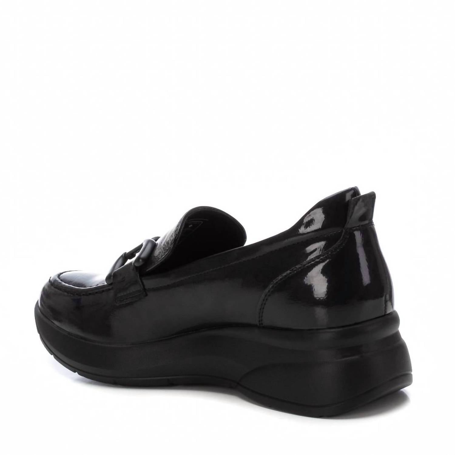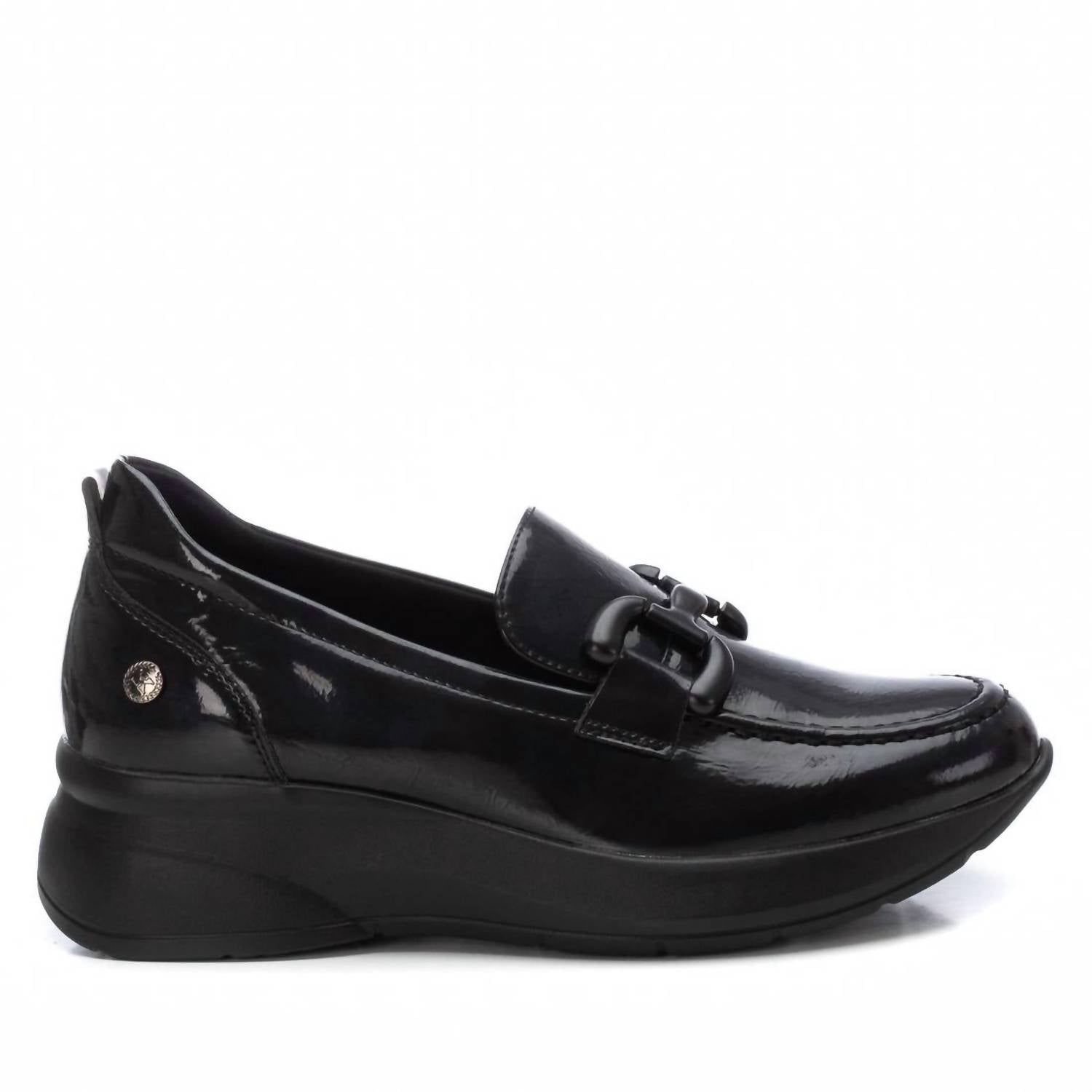 Este mocassim casual feminino apresenta um salto anabela baixo de 1,57 polegadas, cabedal de couro sintético com detalhes metálicos e palmilha acolchoada com sola de borracha antiderrapante para conforto o dia todo.