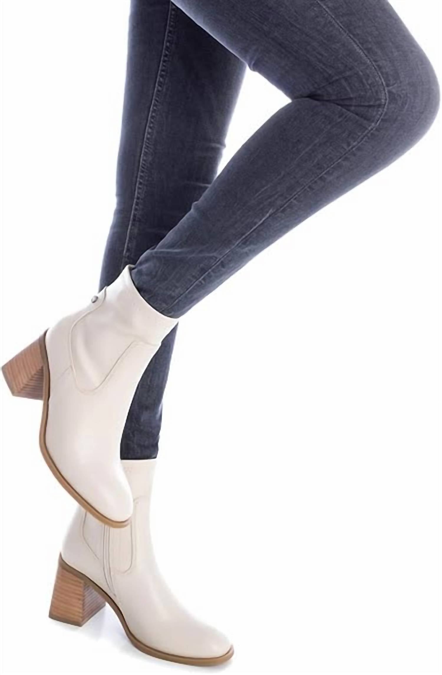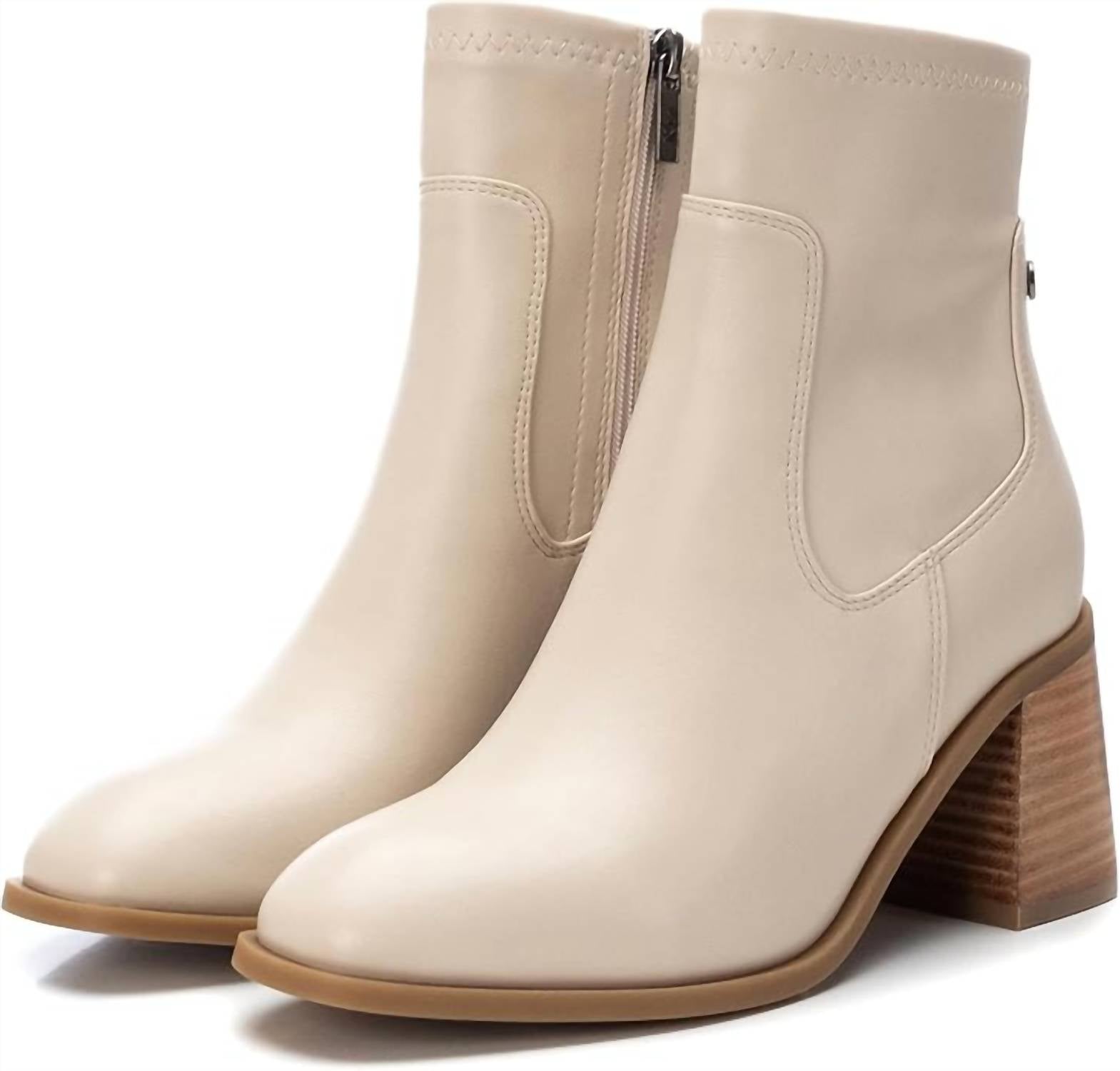 Diga olá à bota perfeita e versátil. A altura do tornozelo facilita a transição do dia para a noite. Use-a com sua calça jeans skinny favorita e camiseta para um look mais descontraído, ou combine-a com seu minivestido e jaqueta favoritos para uma saída à noite. Feita de material que imita a pele, tipo meia Chelsea que se ajusta à perna. Zíper lateral. Salto largo de 7 cm com solado antiderrapante.