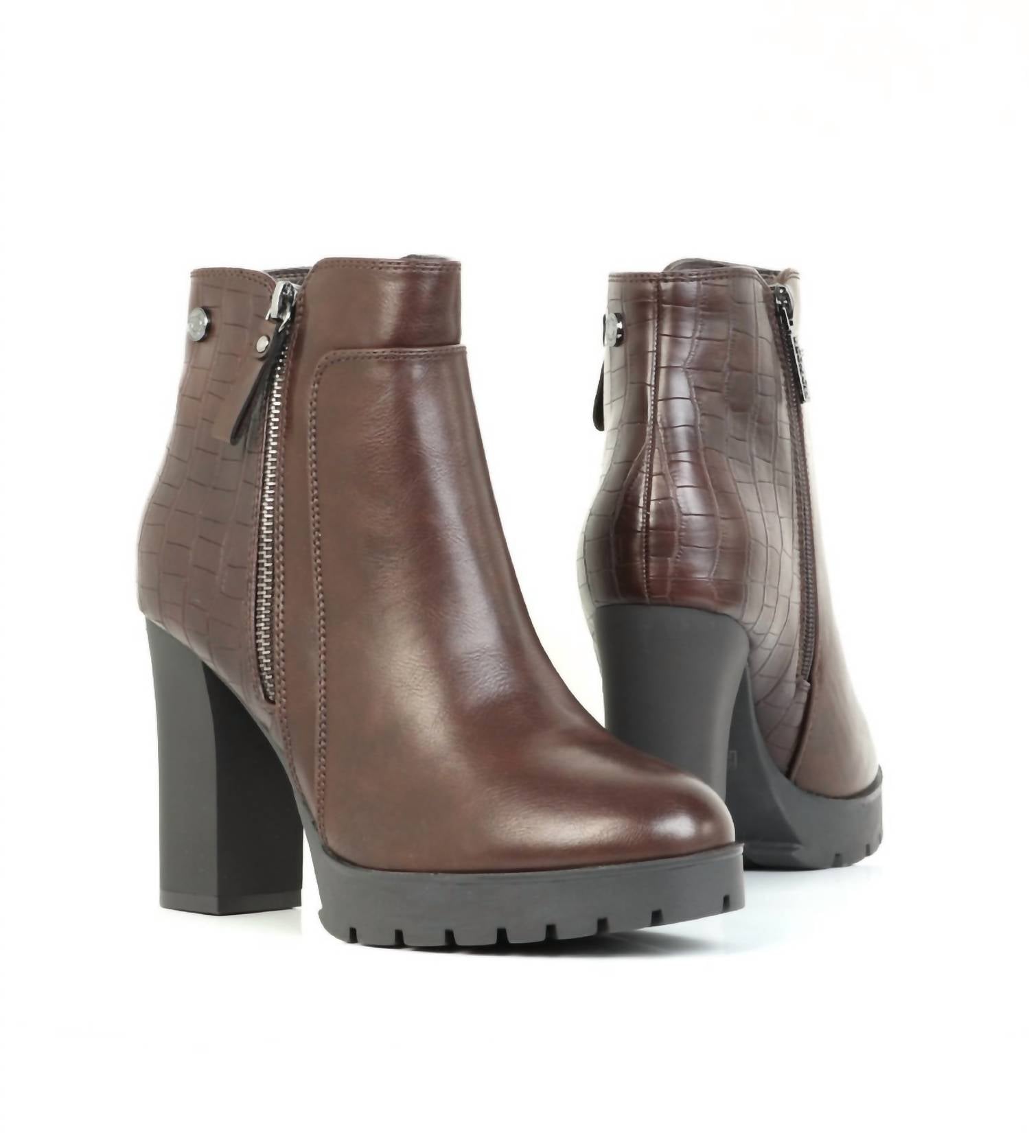 Uma bota estilosa com ajuste confortável e altura ideal. Estas botas clássicas são o complemento perfeito para qualquer look e podem ser usadas em qualquer estação. Confeccionadas em um material premium que imita couro legítimo com um efeito coco exclusivo. Apresentam fecho interno por zíper para um ajuste seguro, complementado por um zíper lateral decorativo para um toque de estilo. Desenhadas com uma plataforma frontal elegante. Contam com um solado de borracha leve e antiderrapante. Salto de 10 cm.