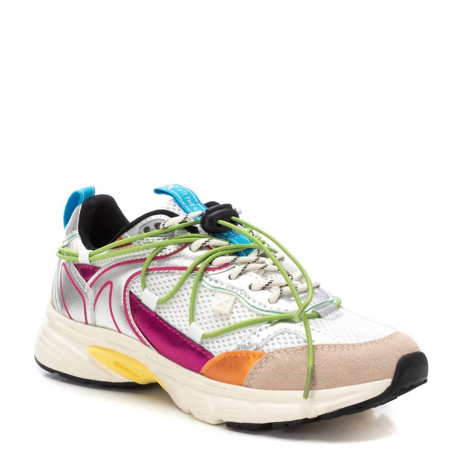 Dê seus passos diários com esses tênis adoráveis. Apresentamos os Tênis Femininos da Xti, confeccionados em couro sintético de alta qualidade com detalhes em mesh metálico e têxtil para um ajuste elegante e confortável. Com salto plano e solado esportivo antiderrapante, estes tênis contam com palmilha Comfortech removível para maior suporte. Com tiras elásticas decorativas e uma tira de calcanhar prática, são perfeitos para adicionar um toque ousado aos seus looks casuais. Certificados como veganos pela PETA, estes tênis combinam perfeitamente moda e ética.