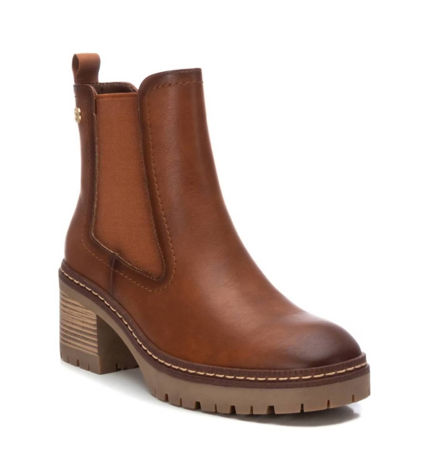 Esta botinha de couro sintético possui fecho de zíper, laterais elásticas e salto bloco de cano médio para conforto e flexibilidade. Seu design vegano combina estilo com uma escolha consciente para quem se preocupa com o meio ambiente.