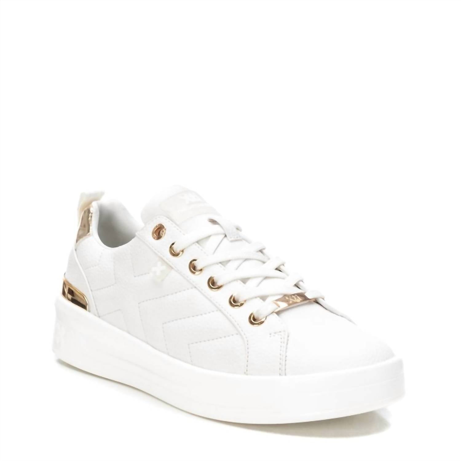 Quando moda e funcionalidade se unem perfeitamente. Este tênis de couro sintético é confeccionado em material de alta qualidade que imita couro legítimo, com fecho de cadarço ajustável para um ajuste perfeito e detalhes metálicos para um toque moderno. O solado de borracha com 4 cm de espessura proporciona tração e conforto superiores, enquanto a palmilha removível garante suporte personalizável. Possui certificação vegana da PETA, garantindo uma escolha ética.