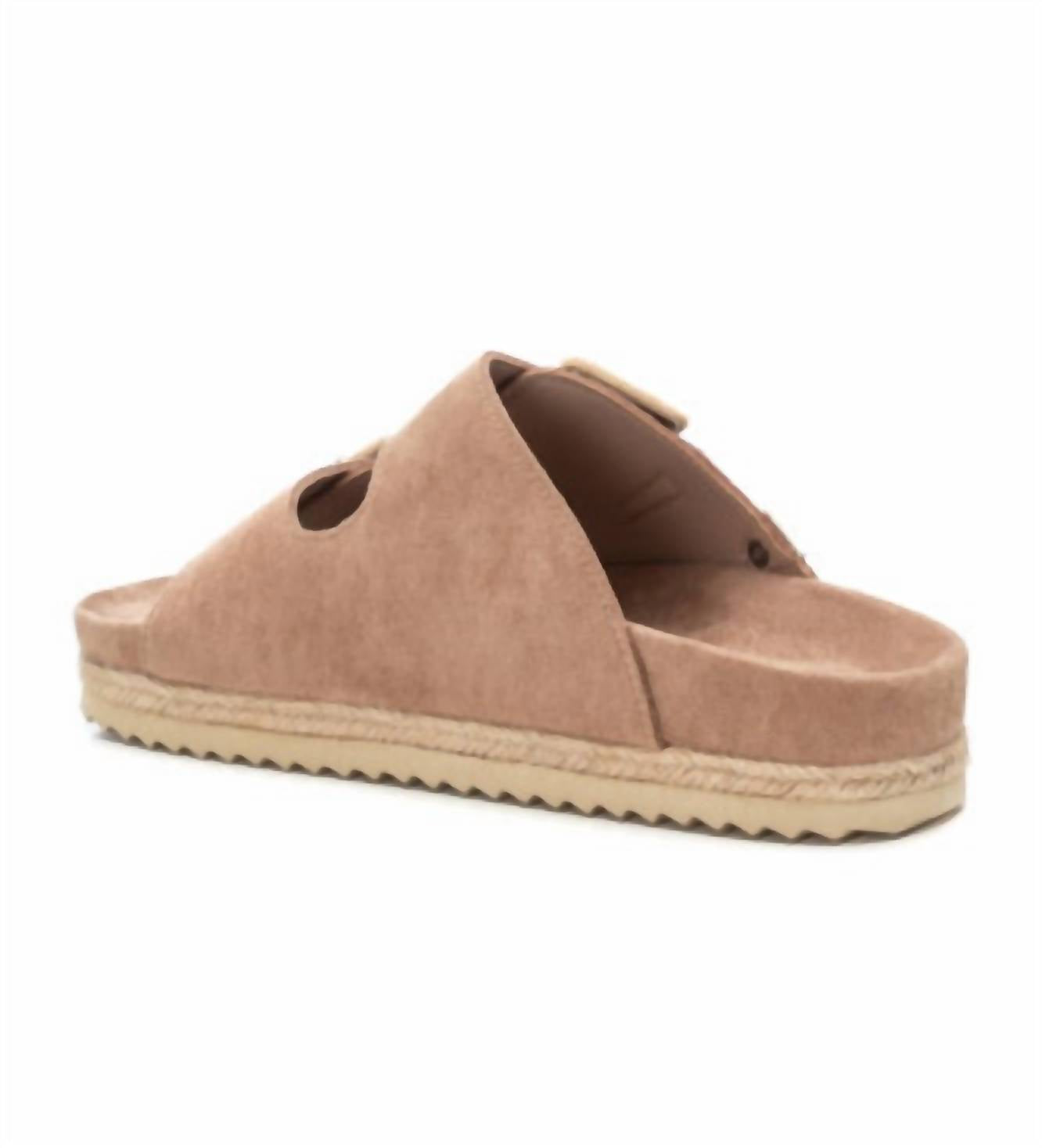 Clássico e fofo, perfeito para usar o dia todo. Adoramos esta sandália. Esta sandália rasteira apresenta um design de gáspea dupla com fivelas ajustáveis ​​para um ajuste perfeito. O solado Bios forrado em camurça combinando garante conforto, enquanto o solado de juta trançada e o solado serrilhado antiderrapante proporcionam estabilidade. Vegano com certificação PETA.