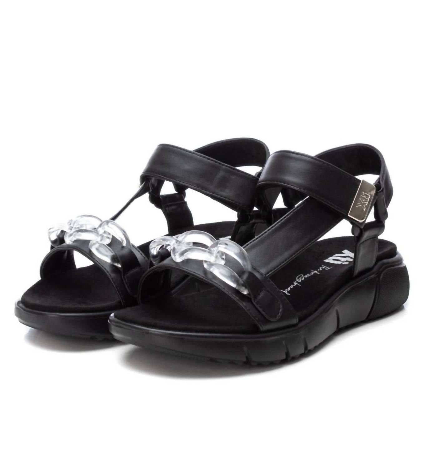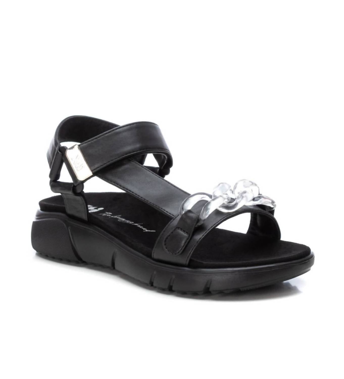 Clássico e fofo, perfeito para usar o dia todo. Adoramos esta sandália. Confeccionado em camurça. Apresenta corrente decorativa translúcida, fecho com tira adesiva para um ajuste seguro e solado grosso com solado antiderrapante.