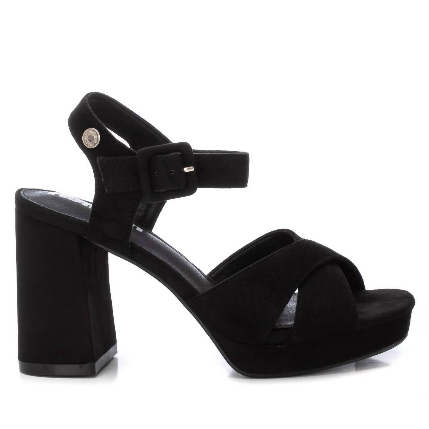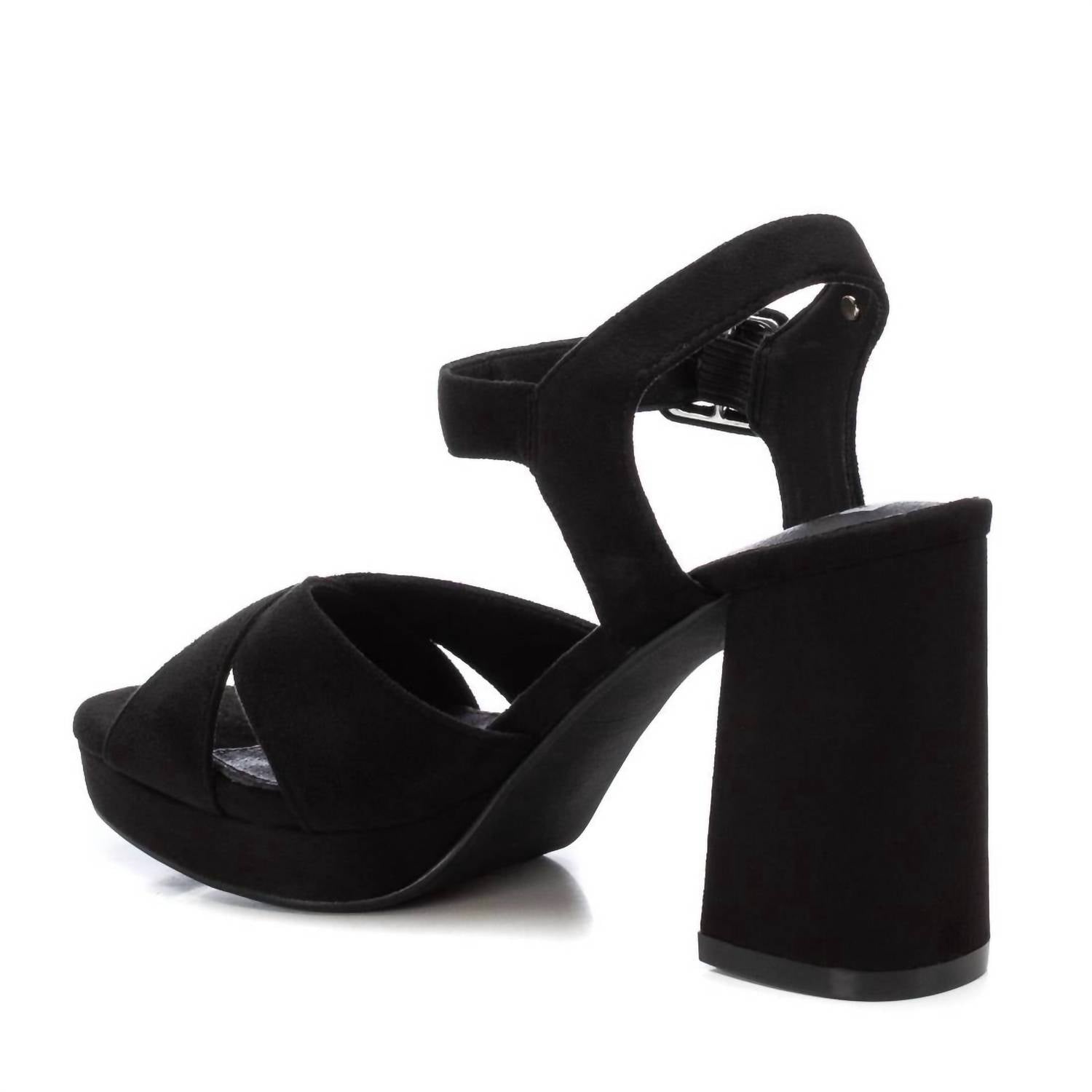 Eleve o seu look com as Sandálias Femininas de Couro com Salto da Xti na cor preta clássica. Confeccionadas em camurça macia, estas sandálias apresentam um design exclusivo de salto duplo cruzado, tira no tornozelo e fecho de fivela estiloso. As sandálias possuem um salto bloco confortável de 9 cm (3,54 polegadas) com plataforma frontal para garantir conforto durante todo o dia. Com certificação vegana pela PETA, elas combinam moda ética com um estilo inegável.