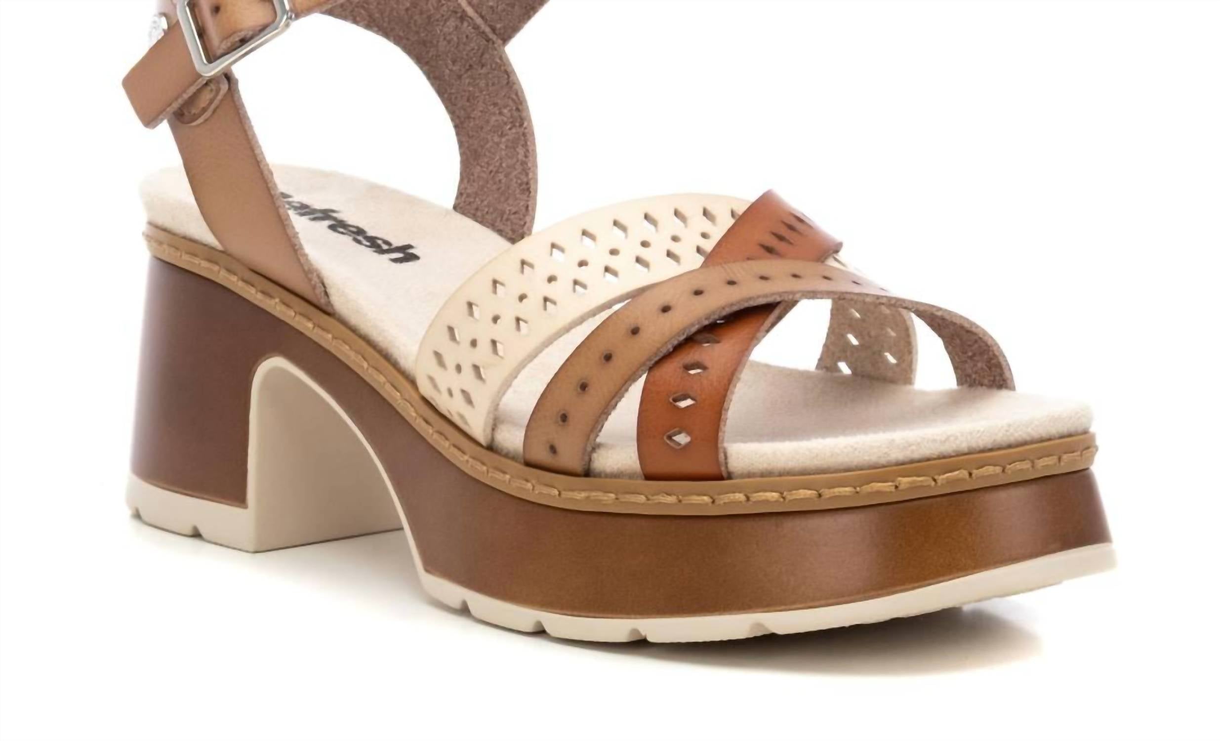Vestidos esvoaçantes, calças cropped e até macacões... esta sandália combina com todos eles! Saia com estilo com as Sandálias de Salto Femininas da Xti, confeccionadas para oferecer conforto e estilo na cor Bege. Com cabedal em material sintético com detalhes em listras, estas sandálias oferecem fecho por fivela e bico arredondado. Com salto bloco de 6 cm e plataforma, garantem conforto o dia todo com solado de borracha antiderrapante. Estas sandálias são certificadas como veganas pela PETA, incorporando estilo e design ético consciente.