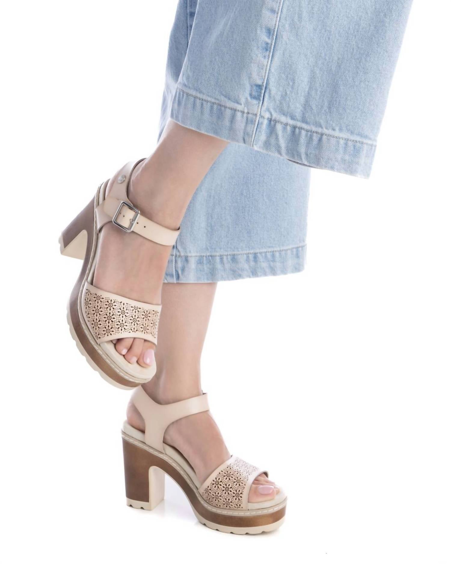 Eleve o seu look com as Sandálias de Salto Femininas da Xti, uma escolha chique para qualquer ocasião. Estas sandálias bege são confeccionadas em couro sintético e apresentam um elegante salto bloco com 9 cm de altura. O bico arredondado e o fecho por fivela adicionam um toque de elegância, garantindo um ajuste seguro. Projetadas com ajuste padrão, elas combinam perfeitamente moda e conforto.