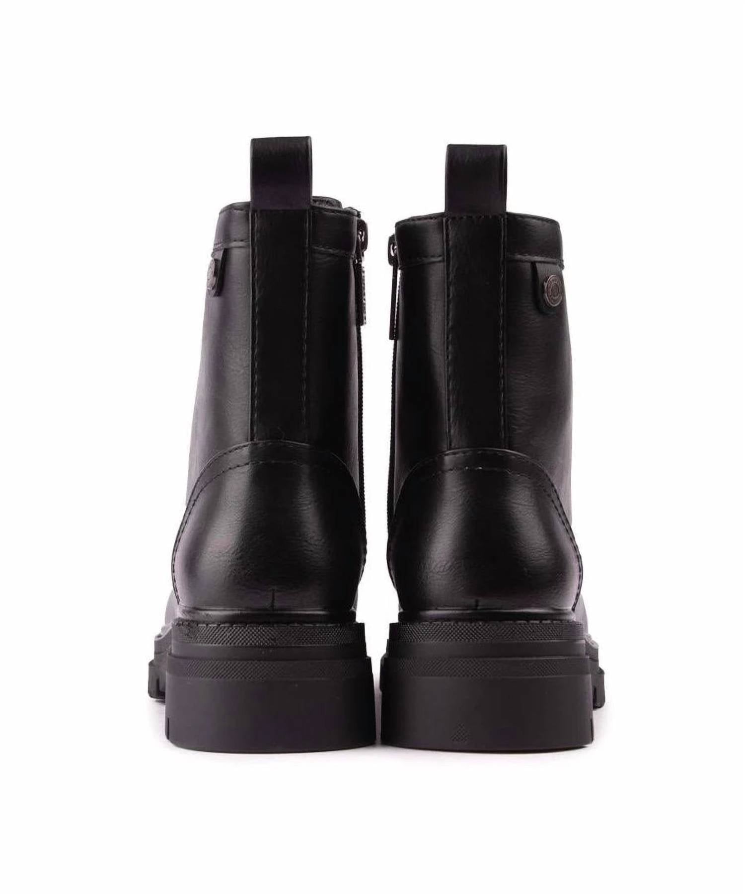 Saia com estilo e mostre seu gosto impecável com estas adoráveis botas de amarrar. Mantenha o estilo casual com um vestido longo ou eleve seu visual combinando estas botas com a calça jeans skinny e o blazer perfeitos. Botas femininas de amarrar da Xti. Botas pretas clássicas estilo combate. Conforto casual moderno. Zíper lateral e fecho de cadarço para um ajuste perfeito. Solado de borracha leve e antiderrapante para durabilidade e facilidade de uso. Transição versátil do dia para a noite. Adição essencial à sua coleção de calçados.
