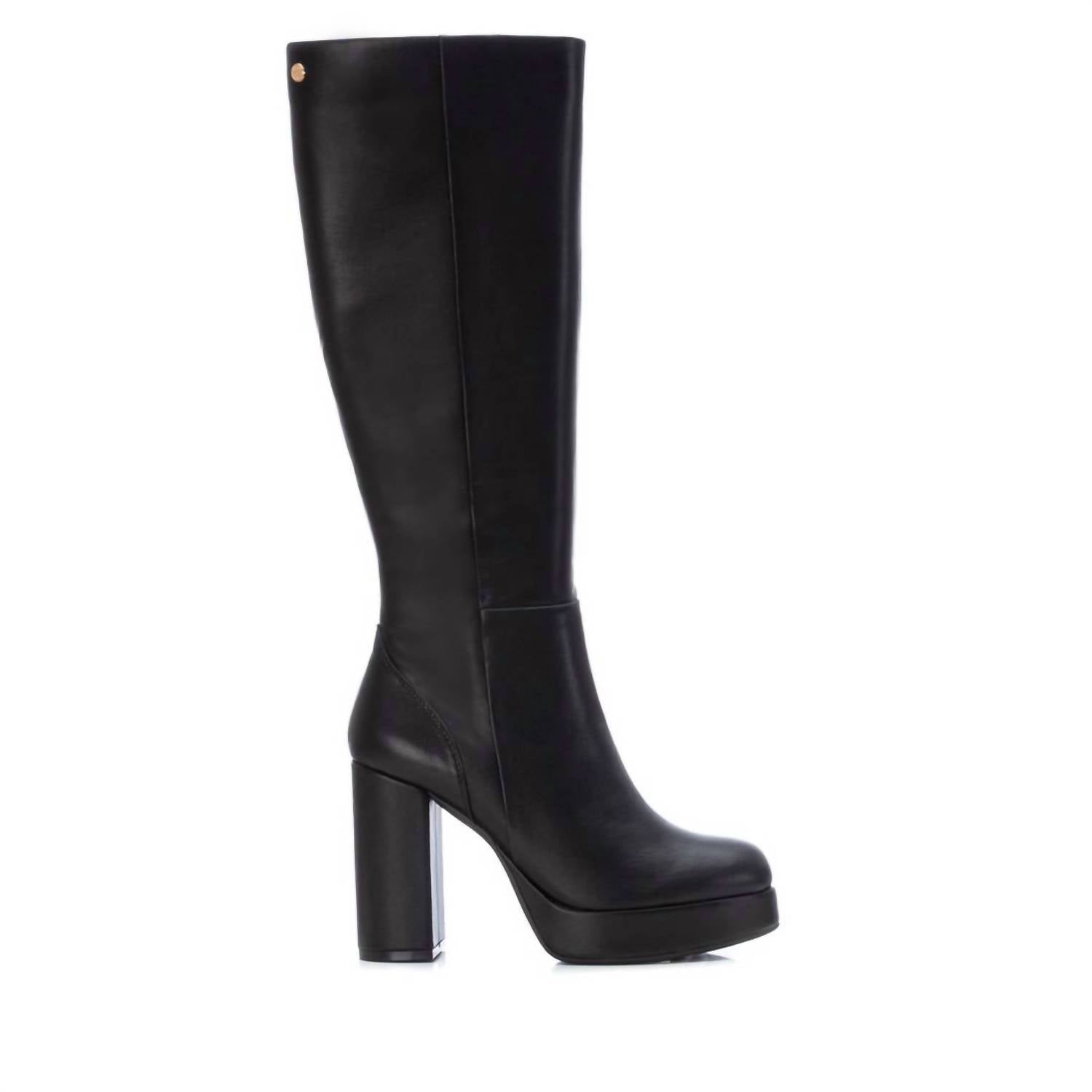 Saia com confiança e mostre seu gosto impecável com estas botas versáteis e estilosas. Seu estilo clássico fará você recorrer a elas estação após estação. Feito de material que imita couro. Fechamento por zíper lateral. Cano de 38 cm. Salto largo de 10 cm com plataforma frontal de 2,5 cm para maior conforto. Solado de borracha antiderrapante.