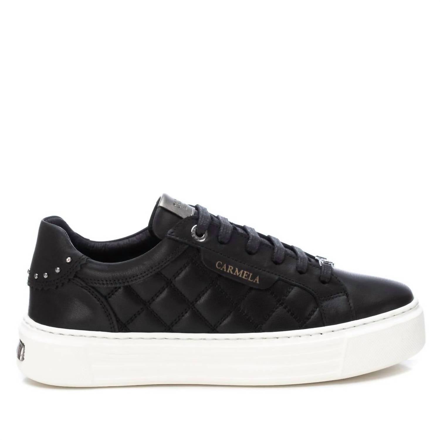 Entre na sofisticação com os Tênis Femininos de Couro da Coleção Carmela da Xti, confeccionados em couro de alta qualidade para máxima durabilidade e um toque luxuoso. Estes tênis possuem fecho de cadarço ajustável, garantindo o ajuste perfeito, e apresentam detalhes acolchoados e metálicos para um toque ainda mais elegante. Com um solado de borracha antiderrapante confortável e uma palmilha removível prática, eles oferecem estilo e conforto superior. Eleve o nível dos seus itens básicos de guarda-roupa com estes tênis modernos que combinam perfeitamente estilo e funcionalidade.