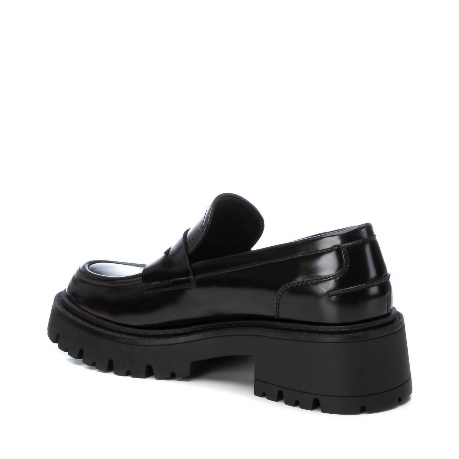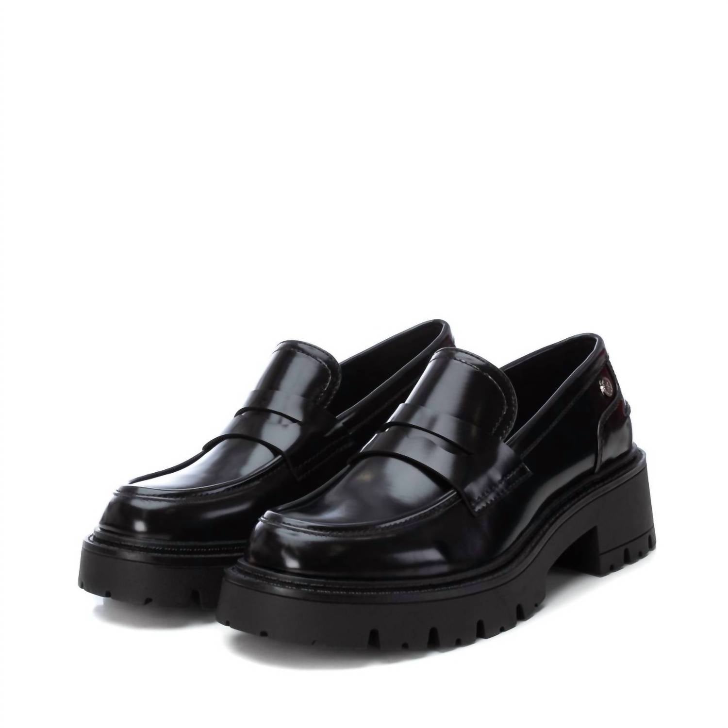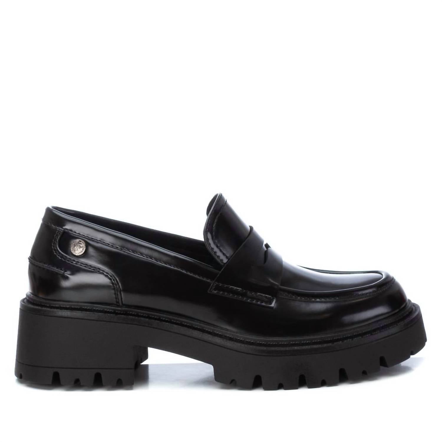 Este mocassim é confeccionado em couro sintético preto elegante com acabamento envernizado elegante e design decorativo recortado, com fecho de cadarço ajustável para um ajuste perfeito. O solado grosso e serrilhado antiderrapante e o salto médio em bloco garantem conforto e versatilidade, além de possuir certificação vegana da PETA, garantindo uma escolha ética.