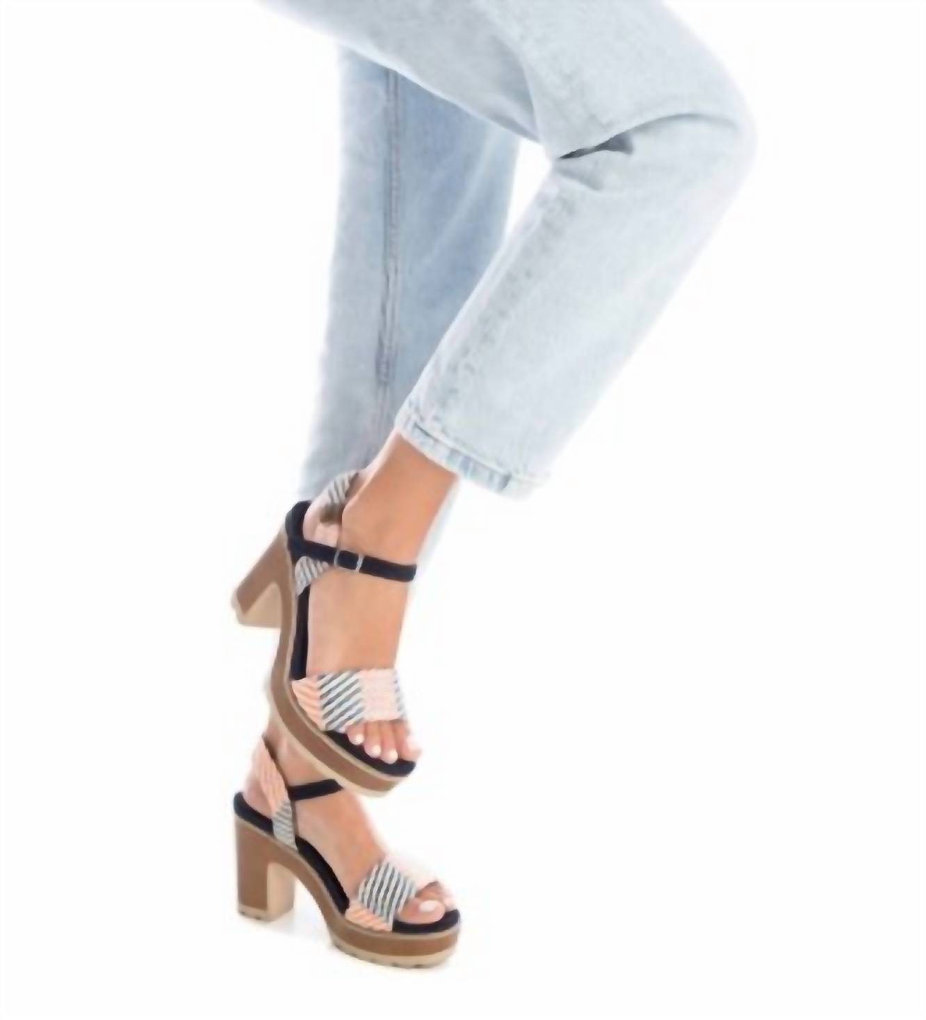Clássico e charmoso, perfeito para usar o dia todo. Adoramos esta sandália. Esta sandália de salto apresenta cabedal têxtil de alta qualidade com tira segura no tornozelo e fivela ajustável. O salto bloco de 8 cm de largura e a plataforma frontal garantem conforto, enquanto o solado antiderrapante proporciona estabilidade. Vegano com certificação PETA, perfeito para qualquer ocasião, do dia à noite.