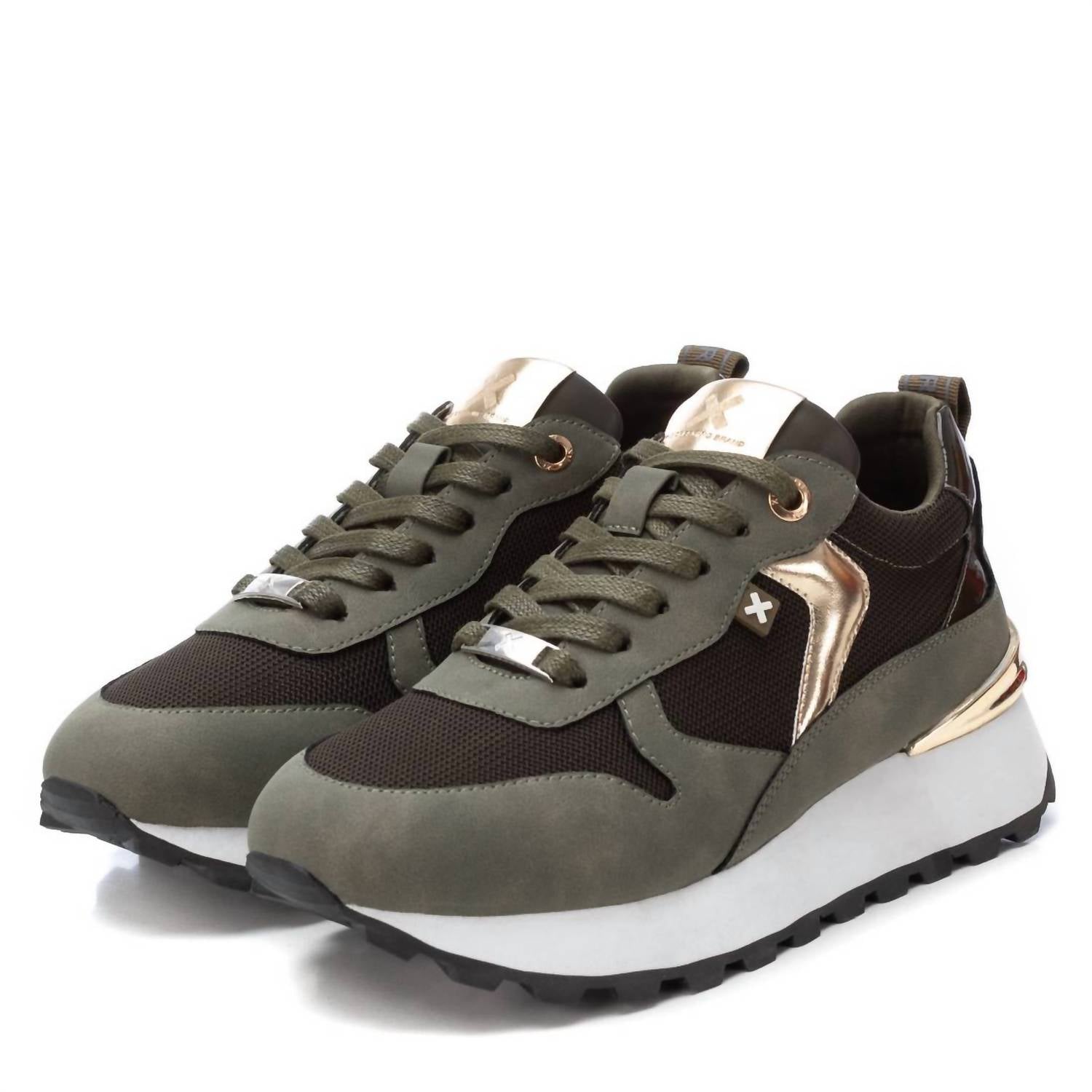 Dê seus passos diários com esses tênis adoráveis. Estes tênis são feitos em material que imita couro, complementados por cadarços ajustáveis e detalhes metalizados para um acabamento elegante. O design inclui solado de borracha antiderrapante e palmilha removível, tornando-os um item essencial para o seu guarda-roupa de inverno. Aproveite a silhueta com bico arredondado e o salto baixo para um visual confortável e moderno.