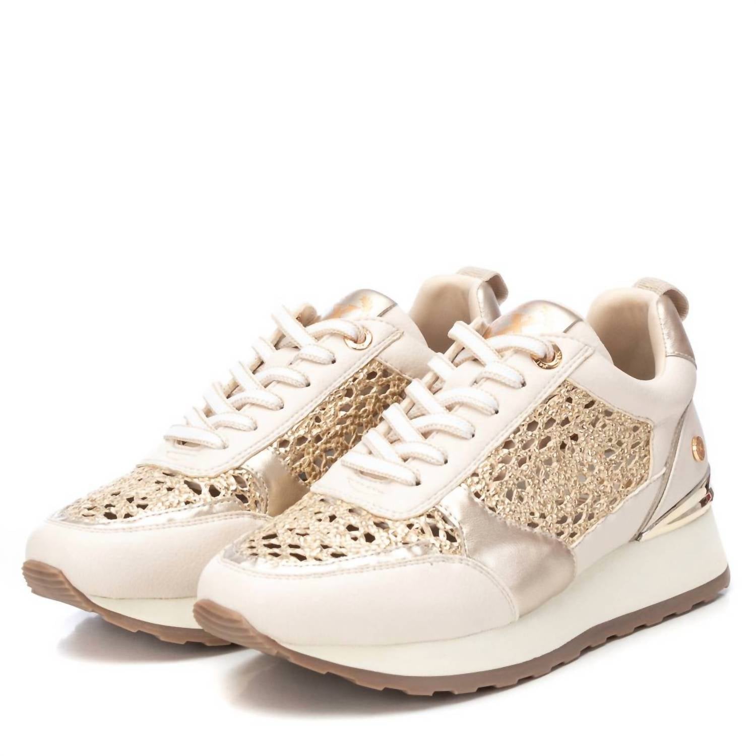 Eleve o seu estilo diário com os Tênis Femininos da Xti, confeccionados em couro sintético chique. Estes tênis combinam um fecho de cadarço com detalhes metálicos e de ráfia, adicionando um toque sofisticado aos seus looks casuais. Projetados com salto baixo e bico arredondado, eles garantem conforto sem comprometer a elegância. Com solado antiderrapante e detalhe metálico no calcanhar, estes tênis são perfeitos tanto para correrias quanto para saídas sociais.