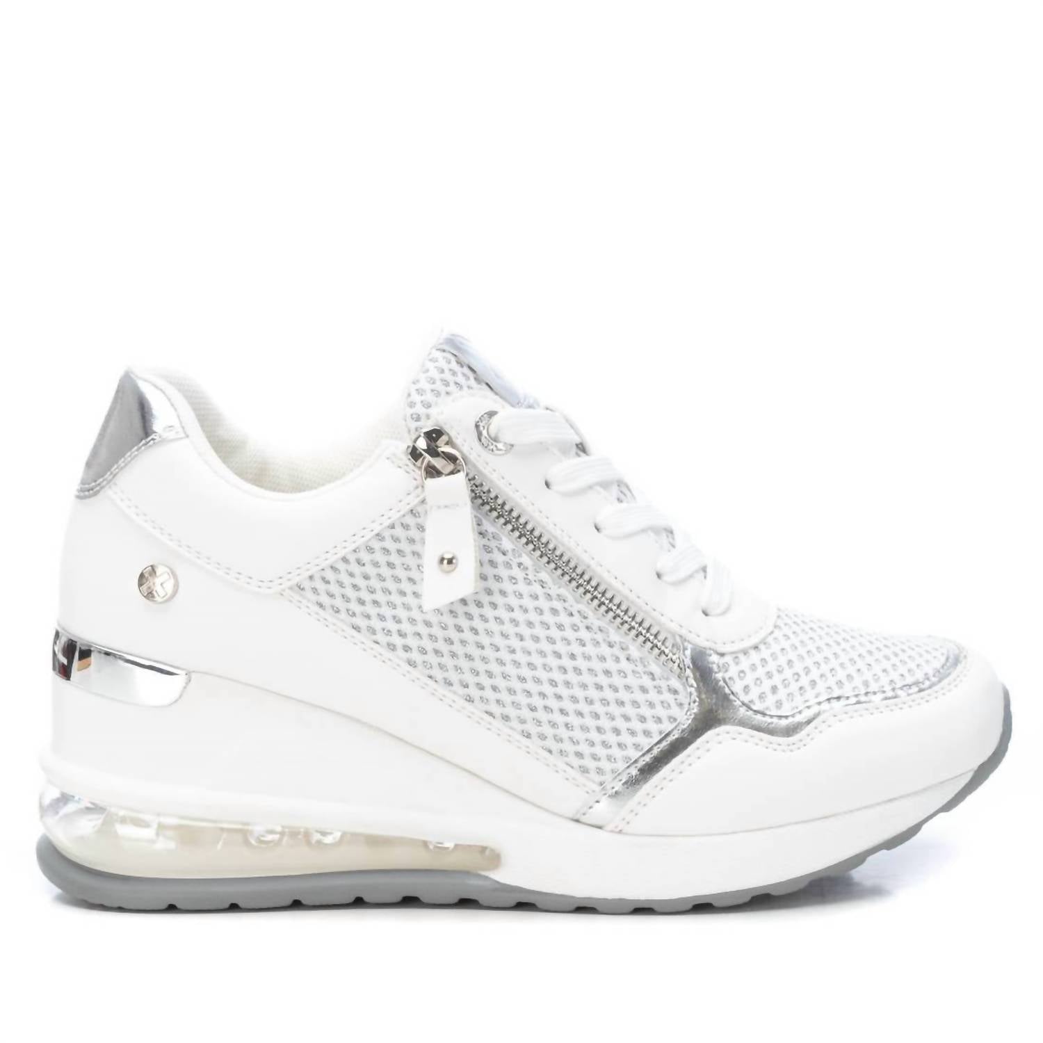 Quando moda e funcionalidade se unem perfeitamente. Estes tênis estilosos apresentam um salto anabela de 7 cm (2,75 polegadas) com uma combinação elegante de couro sintético e tecido para durabilidade e sofisticação. Projetados com bico redondo e solado de borracha antiderrapante com câmara de ar, estes tênis oferecem conforto e durabilidade para as aventuras diárias. Fechamento: Cadarço com zíper lateral para facilitar o calce. Certificados veganos pela PETA, estes tênis são uma escolha consciente para uma moda que respeita os animais.