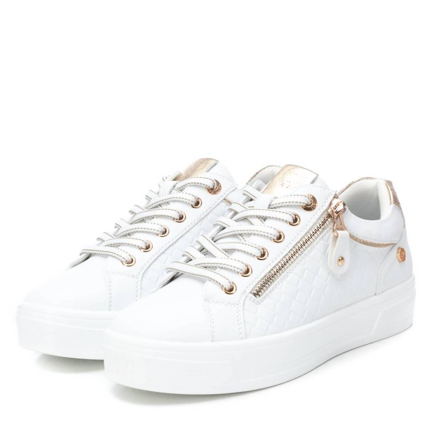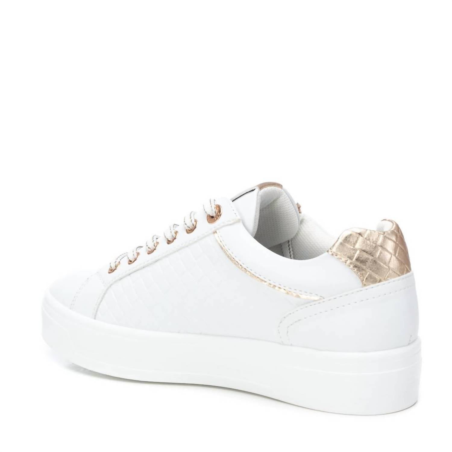 Dê seus passos diários com esses tênis adoráveis. Descubra os Tênis Femininos Trainer, a fusão definitiva de moda e conforto em um tom chique. Confeccionados em couro sintético durável com lateral gravada, estes tênis apresentam um design elegante, realçado por um zíper e cadarços decorativos. Desfrute do máximo conforto com a palmilha removível e o solado de borracha antiderrapante, perfeito para uso o dia todo. Orgulhosamente certificados como veganos pela PETA, estes tênis são uma escolha elegante para consumidores conscientes.