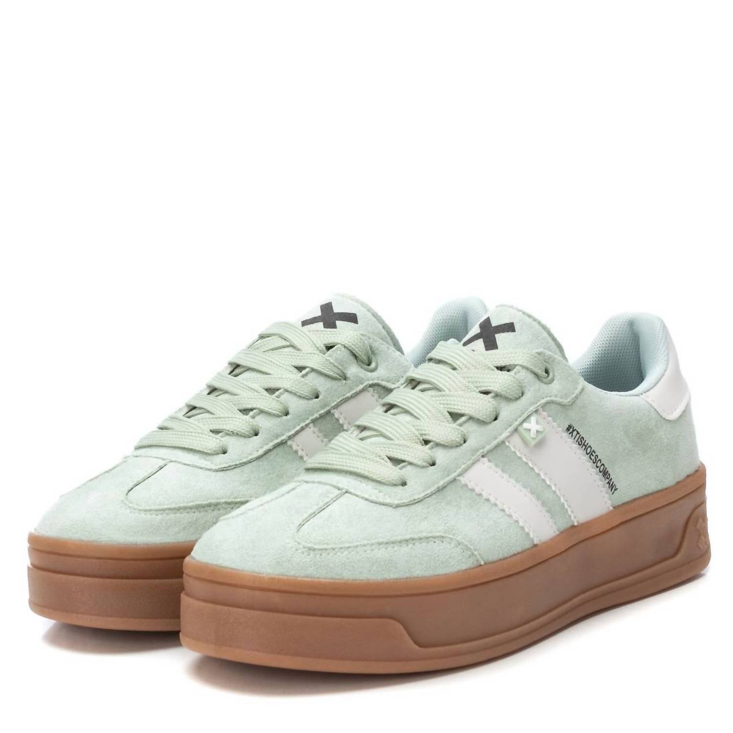 Step into comfort and style with the Women's Trainer Sneakers in a refreshing hue. Crafted from faux suede, these sneakers are ideal for casual outings, offering a sophisticated touch to your look. With a round toe design, they are perfect for everyday wear, ensuring both fashion and durability. Designed for adult women, the absence of a heel emphasizes comfort, making these sneakers a versatile addition to your wardrobe.