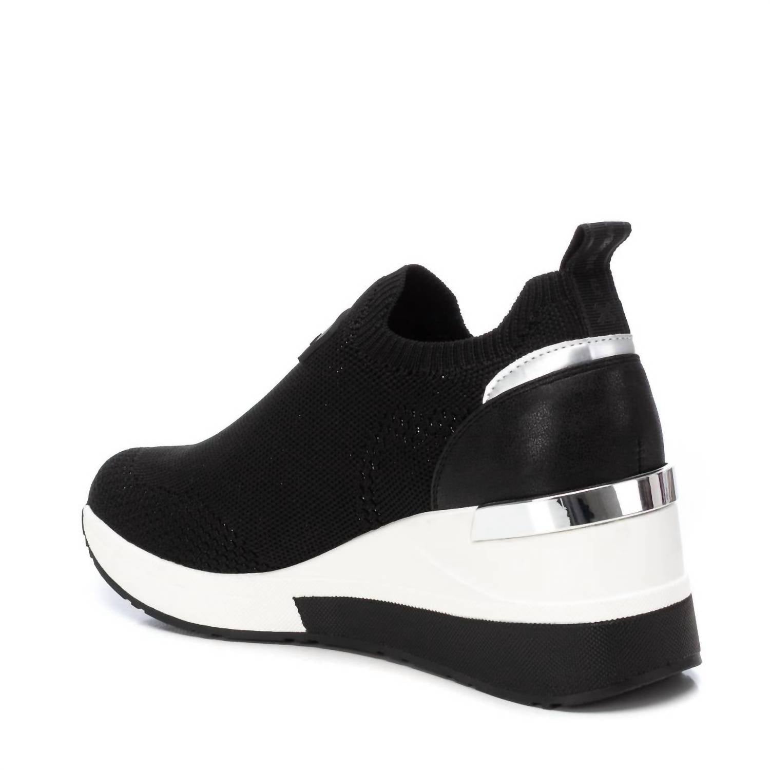 Introducing the Women's Wedge Comfort Sneakers by Xti, a perfect fusion of fashion and comfort in sleek hue. These sneakers feature a mid-height 2.36-inch wedge heel with a two-tone design, and a breathable stretch polyester upper. The slip-on style ensures ease of wear, complemented by a lightweight anti-slip rubber outsole. Certified vegan by PETA, they boast a Comfortech insole for all-day support, making them ideal for your daily adventures.