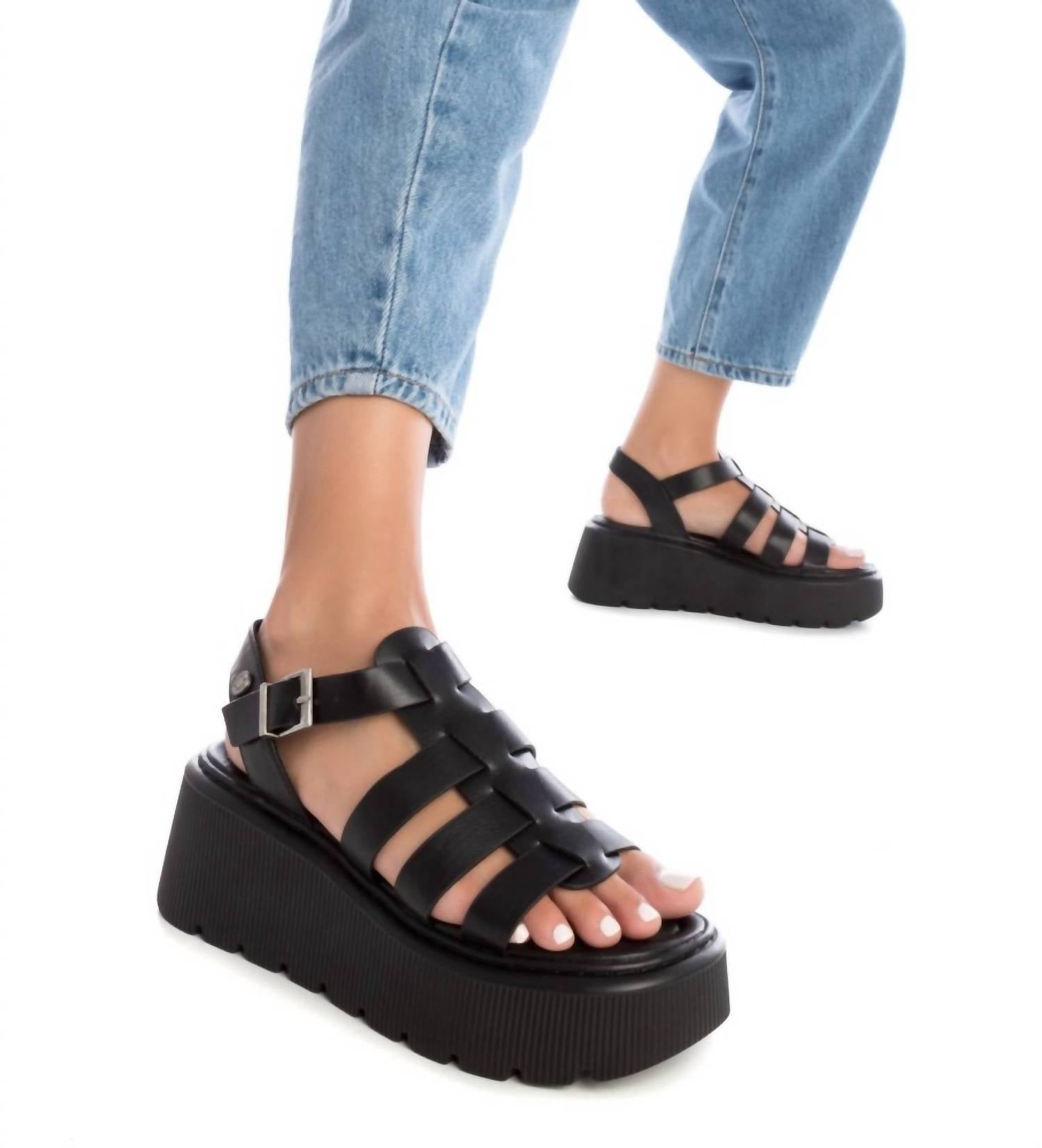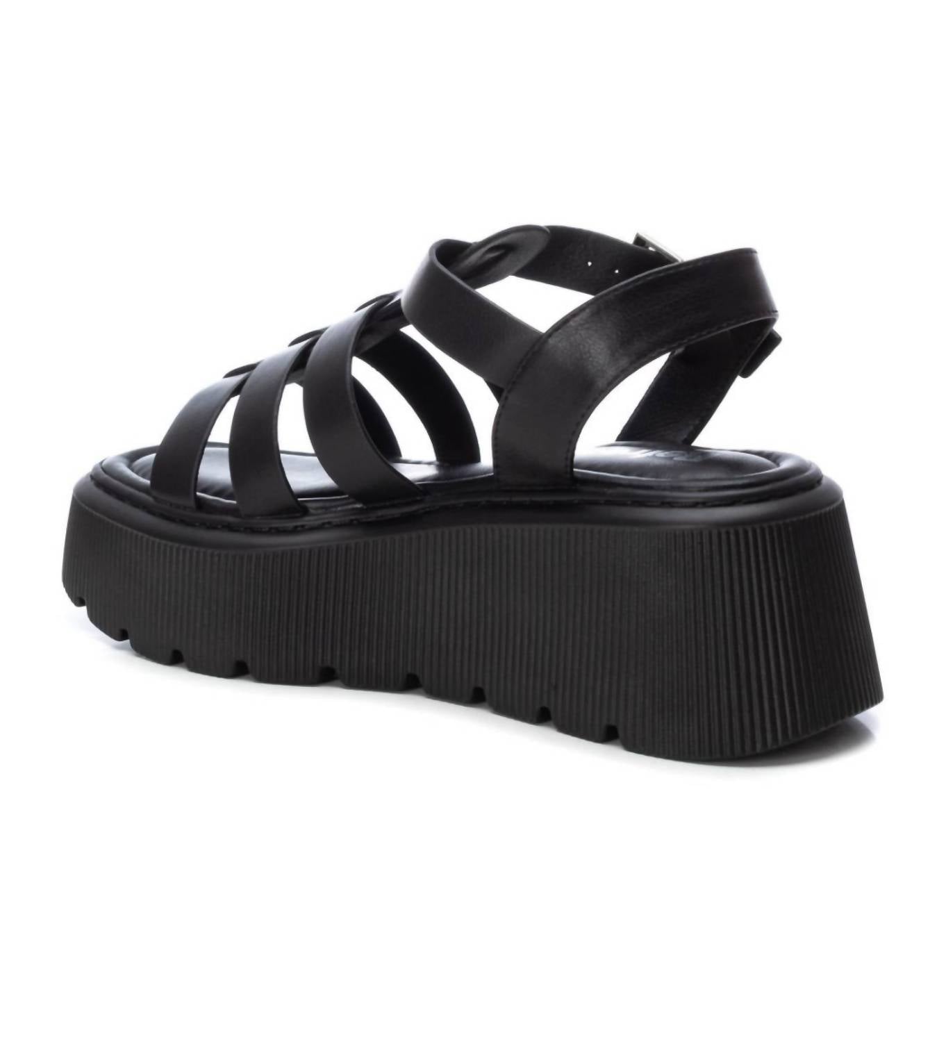 Esta sandália anabela apresenta um design elegante em estilo caranguejo, confeccionada em material premium similar ao couro. Inclui fecho de fivela ajustável para um ajuste seguro e um confortável salto anabela de 6 cm de altura média. Esta sandália oferece sola antiderrapante para maior estabilidade.