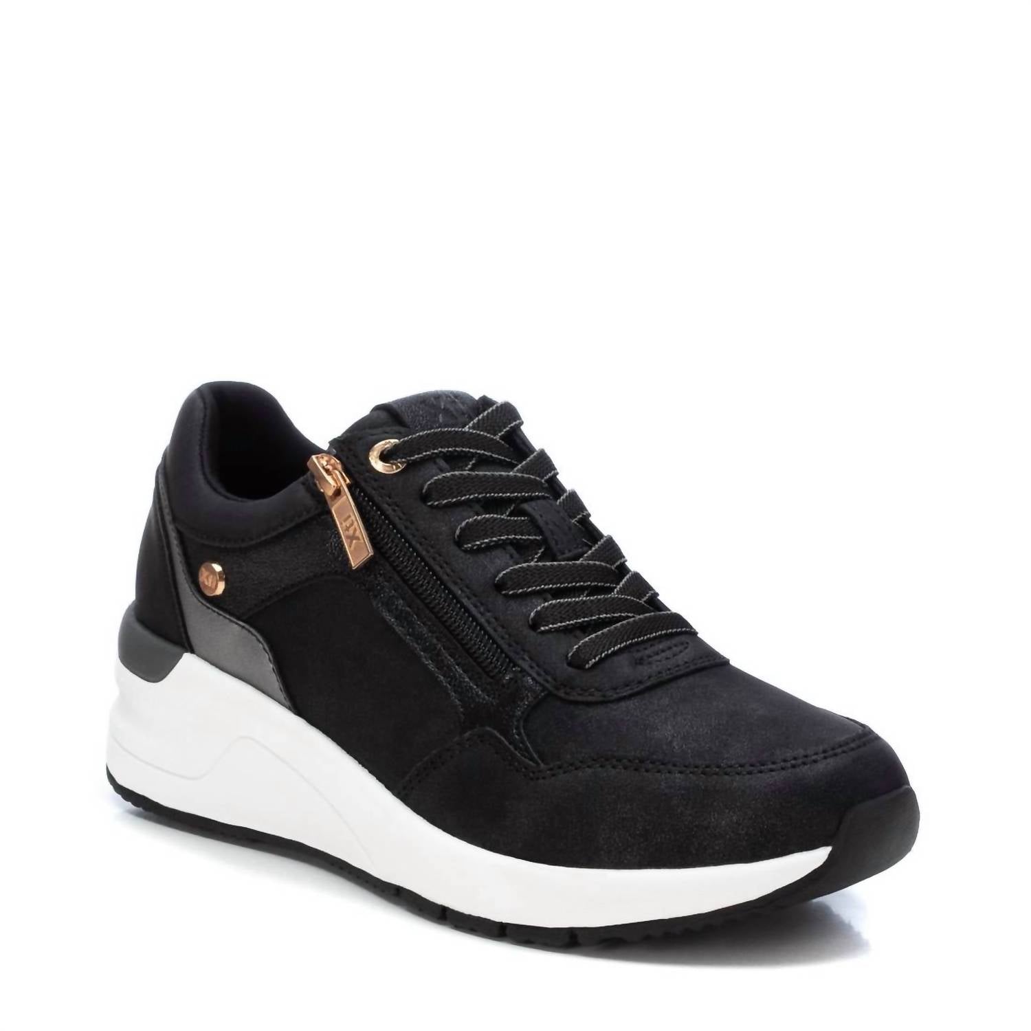 Bonitos, funcionais e confortáveis. Estes tênis atendem a todos os requisitos. Este tênis anabela possui salto anabela de 5 cm, sistema de amarração seguro, solado de borracha leve e antiderrapante, materiais respiráveis e palmilha acolchoada. Feito com materiais de alta qualidade, este tênis oferece estilo, conforto e estabilidade para o uso diário.