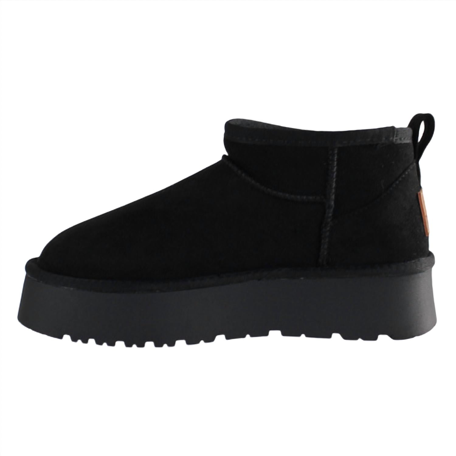 Dia chuvoso? Sem problemas! As botas de chuva mais fofas e confortáveis da estação. Esta botinha de inverno é confeccionada em camurça com um puxador traseiro para facilitar na hora de calçar e descalçar. Possui salto baixo de 4,9 cm, estrutura de piso duplo, sola antiderrapante para estabilidade e é vegana com certificação PETA para moda ética.