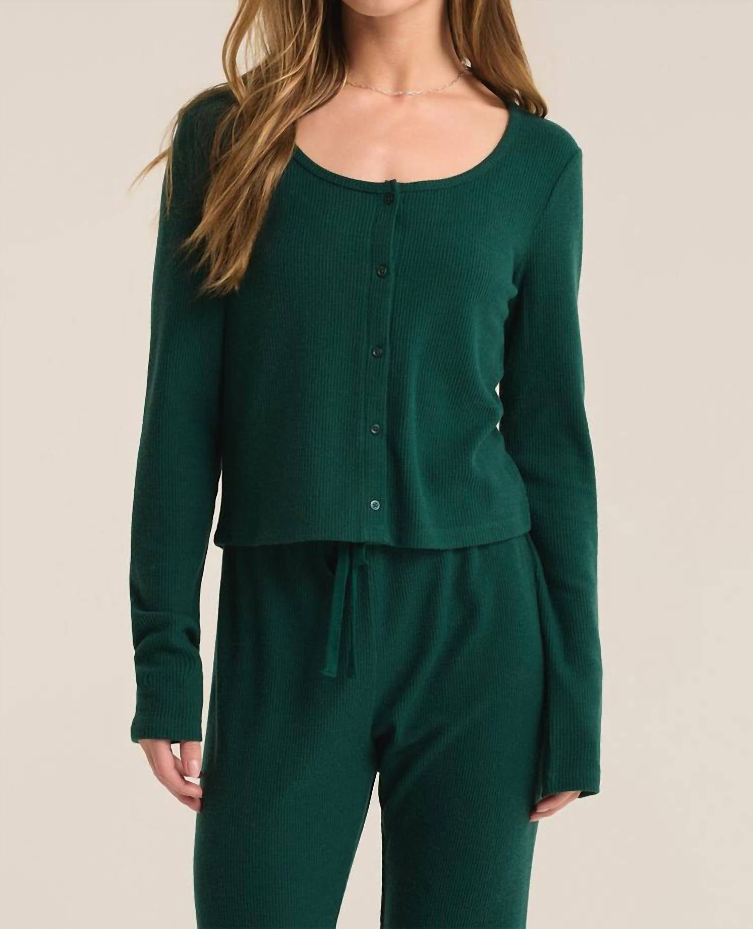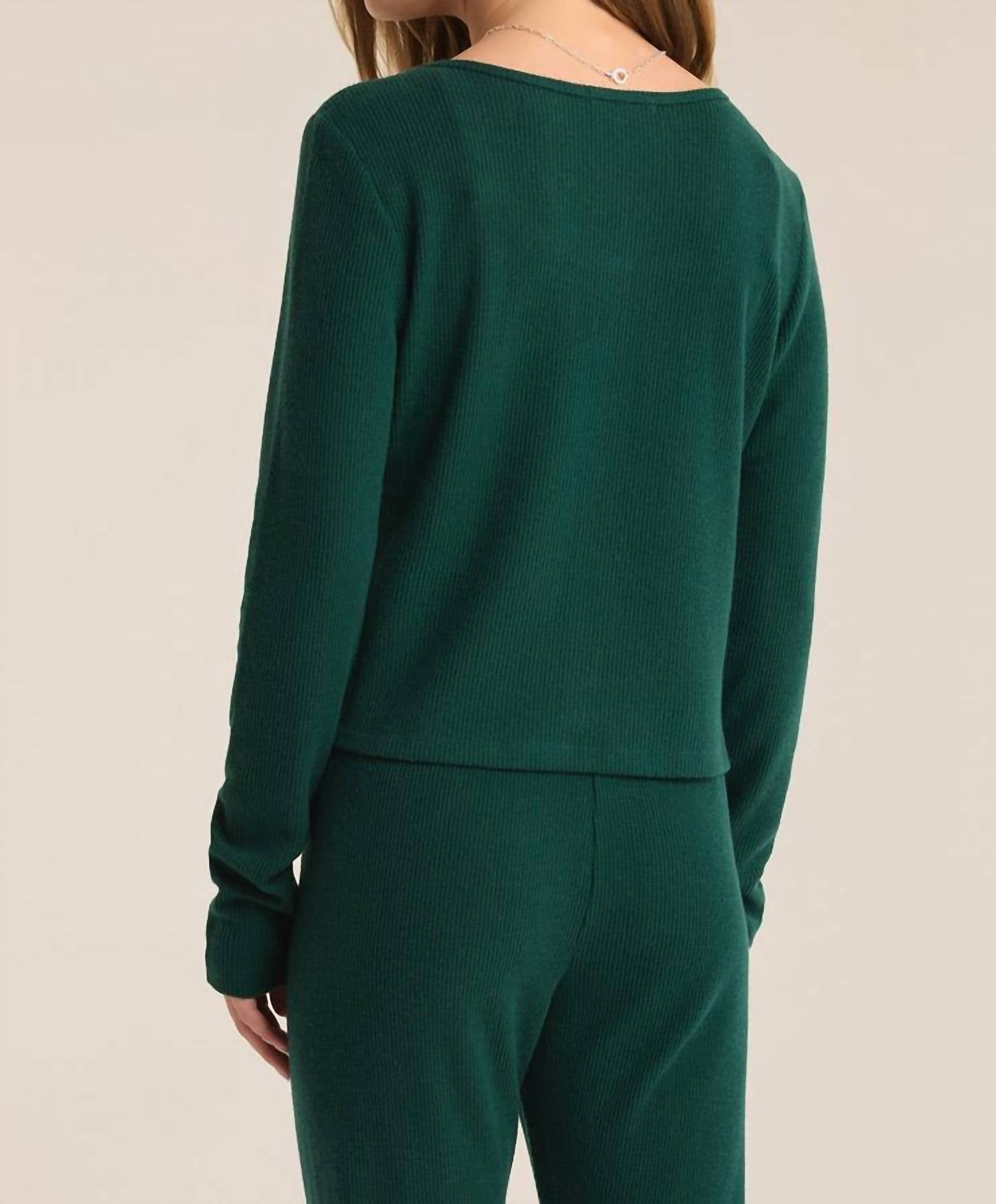 Apresentando o Top Abigail da Z Supply, um Henley de caimento relaxado, confeccionado em tecido térmico mini escovado e macio em um rico tom Noble Fir. Com mangas compridas e fecho frontal por botões, este top combina conforto e versatilidade para dias aconchegantes e casuais. Sua composição inclui 64% poliéster, 33% rayon e 3% elastano. As instruções de cuidado são simples: lavar à máquina com água fria, em ciclo delicado, e secar em temperatura baixa.