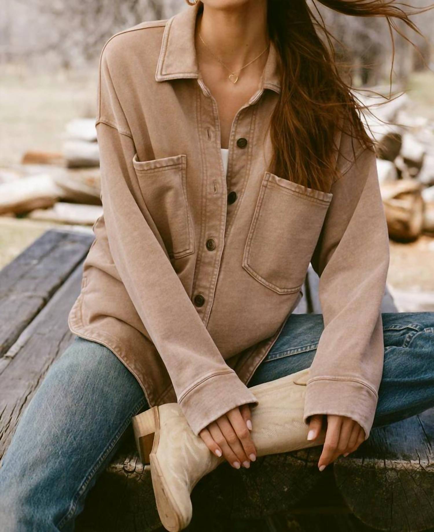 A jaqueta utilitária mais descolada e versátil. Combine com seu jeans favorito ou use-a sobre qualquer vestido do dia a dia. Apresentamos a Jaqueta All Day Knit da Z Supply, uma jaqueta utilitária chique no tom quente e convidativo de Campfire. Esta peça apresenta um caimento oversize confortável, com mangas compridas e bolsos práticos no peito. Confeccionada em felpa francesa 100% algodão, apresenta gola clássica e fecho frontal com botões. Perfeita para o dia a dia, esta jaqueta pode ser lavada na máquina, garantindo fácil cuidado para quem tem um estilo de vida agitado.