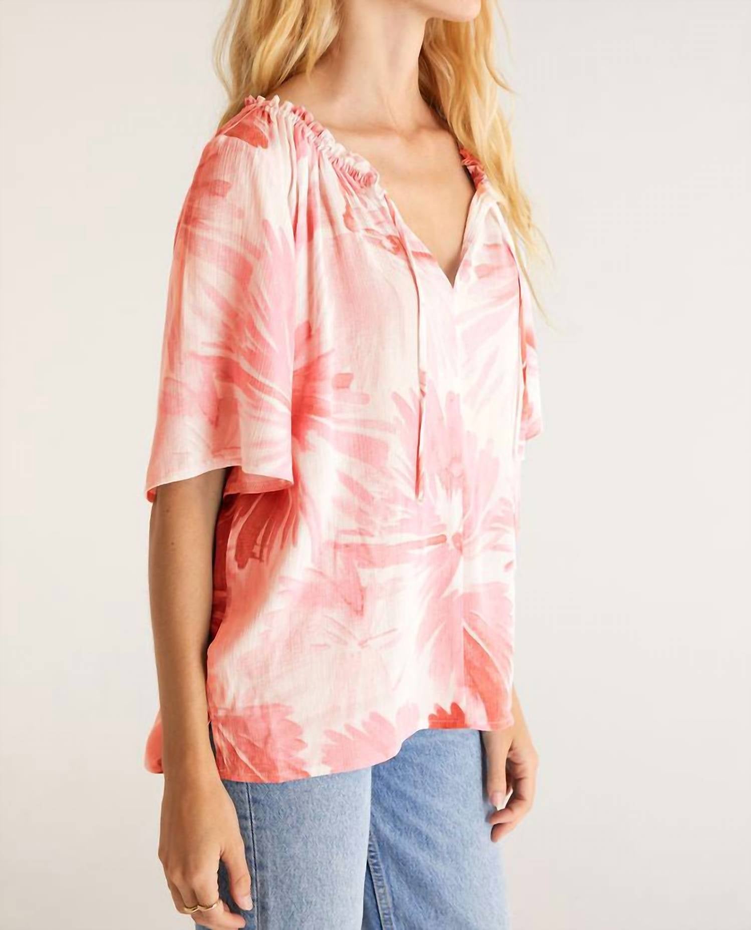 Combine isso com seus jeans e chinelos favoritos para sua próxima noite entre amigas. Com mangas bufantes, detalhe de babados no pescoço e amarração funcional que atravessa o decote, esta blusa é perfeita para um look casual elegante em qualquer dia da semana. Composição do tecido: 100% rayon. A modelo está vestindo tamanho P.
