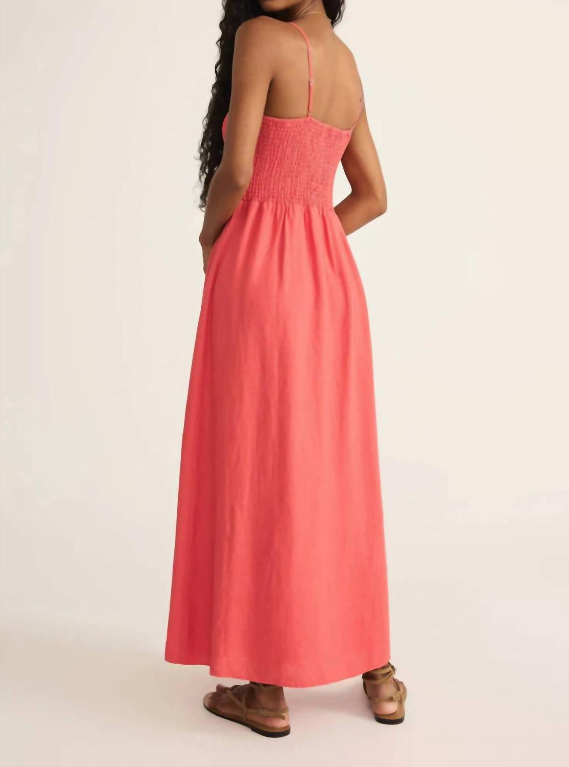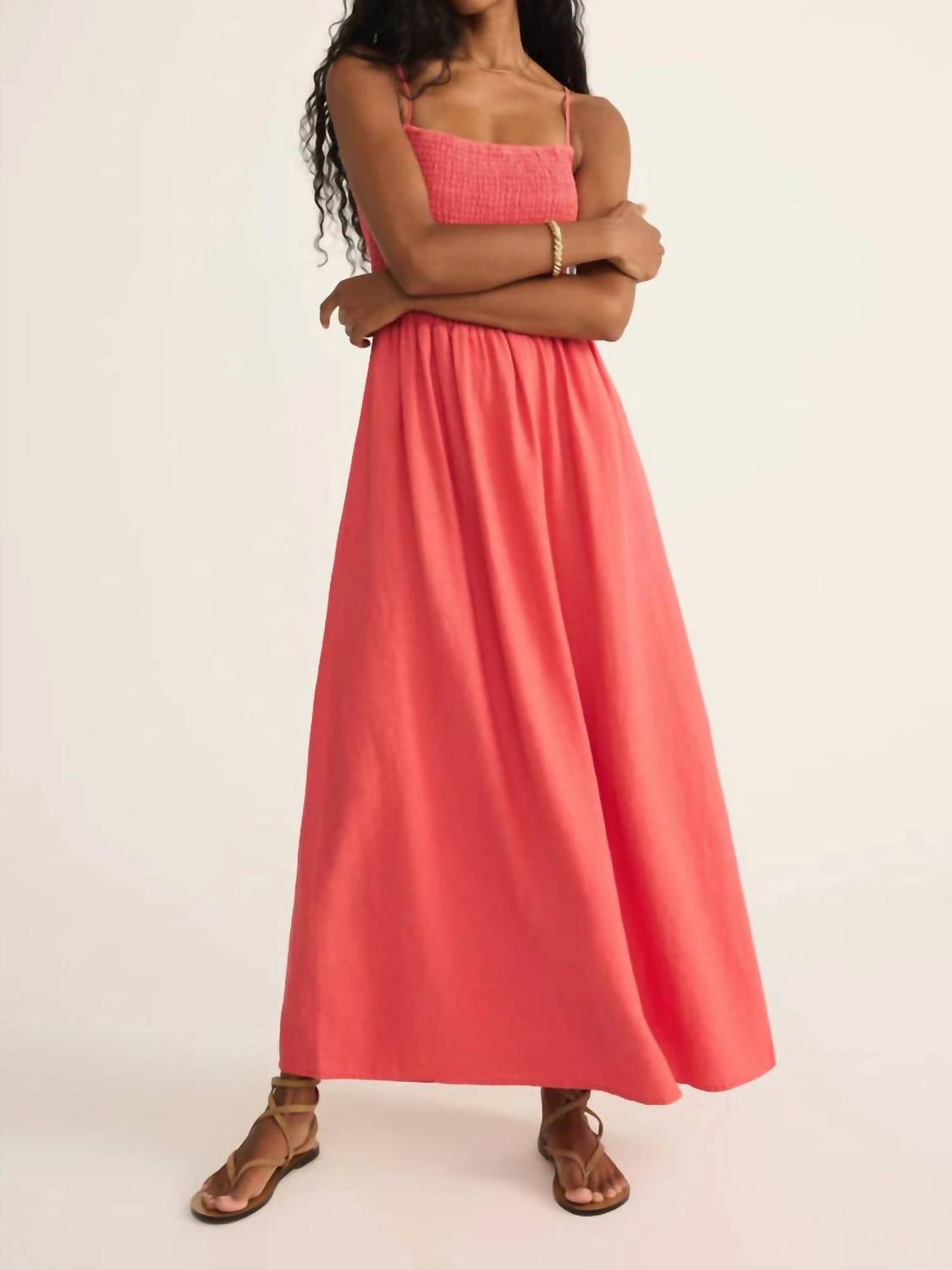 Um vestido longo que é tão fofo quanto confortável. Eleve seu guarda-roupa de primavera com o Vestido Longo Bayside Linen da Z Supply, desenhado em um vibrante tom de caqui. Este vestido sem mangas possui alças finas ajustáveis e um corpete franzido elegante, confeccionado em uma mistura de linho lavado suave, com 55% linho e 45% rayon. Sua silhueta fluida em corte A cai graciosamente até o tornozelo, oferecendo um fecho de puxar para maior praticidade e conforto. A escolha perfeita para dias ensolarados ou noites elegantes, basta lavar na máquina após o uso e desfrutar de seu charme atemporal.