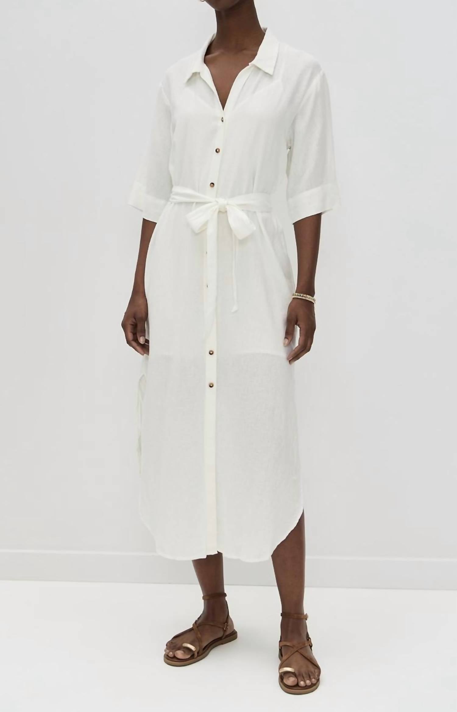The Brise Linen Midi Dress by Z Supply offers a breezy elegance perfect for summer vacations. Sporting elbow-length sleeves and a collared neck, this shirt dress features a button placket for a classic silhouette. With a linen blend composition of 55% linen and 45% rayon, this dress hails from China and ensures comfort with its lightweight, non-stretch weave. Care instructions include a machine wash option, with a length of 50 inches (127 cm) from shoulder for a flattering midi fit.