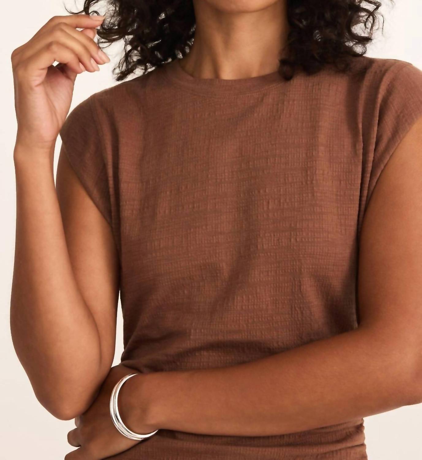 Discover the Camino Textured Mini Dress by Z Supply, a sleek summer essential in a warm teakwood hue. Designed with a minimalist bodycon silhouette, this sleeveless piece is perfect for vacation outings. Crafted from 65% Polyester, 34% Cotton, and 1% Spandex, it offers comfort and a flattering fit. Featuring a pull-on closure, this women's dress is easy to care for with machine wash and line dry instructions.