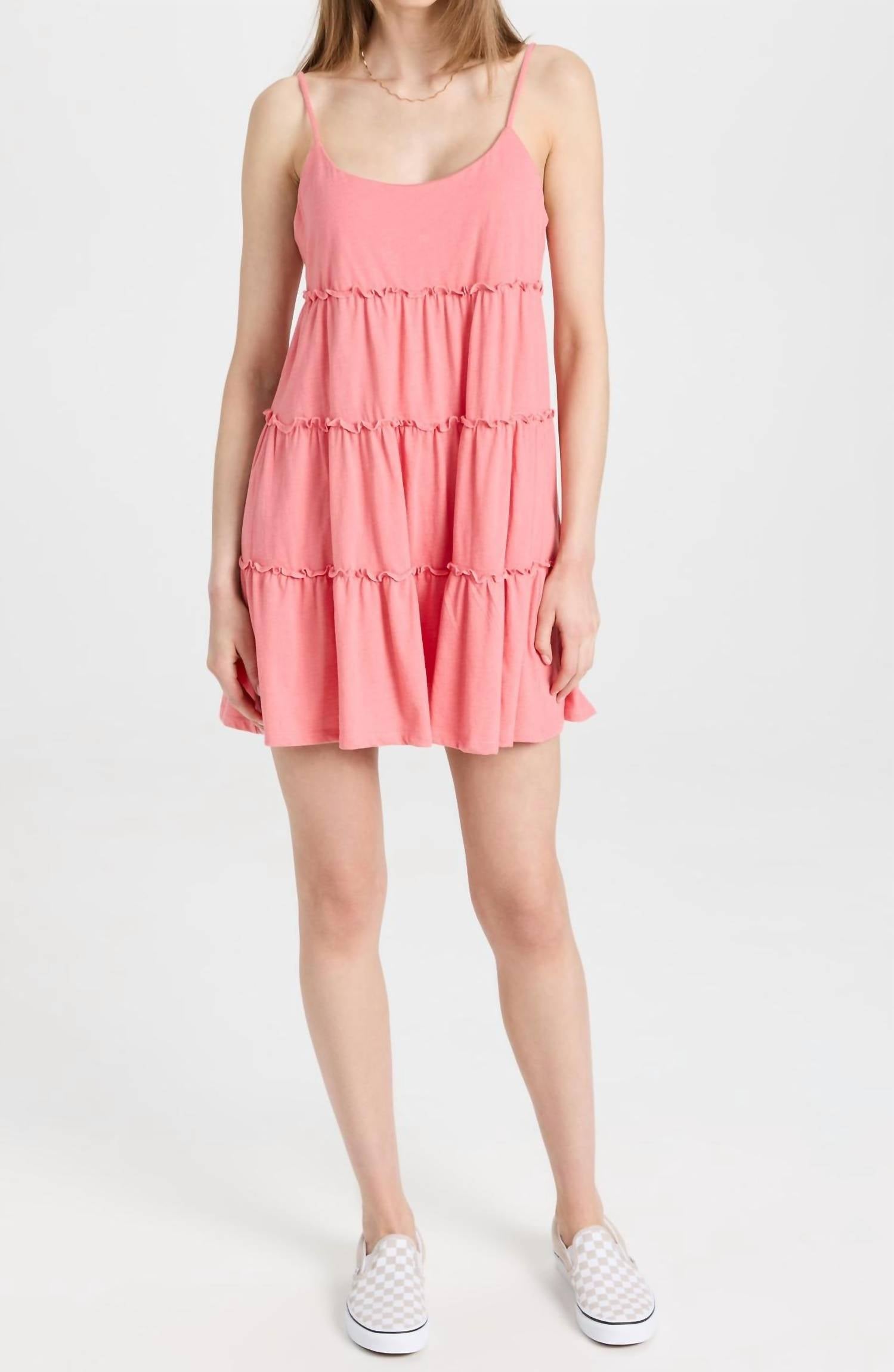 O minivestido perfeito para os meses mais quentes. Este minivestido Carina é feito de malha CVC Jersey macia e confortável, com camadas em camadas com babados invertidos e um leve decote redondo. Composição do tecido: Jersey CVC 60% algodão 40% poliéster.