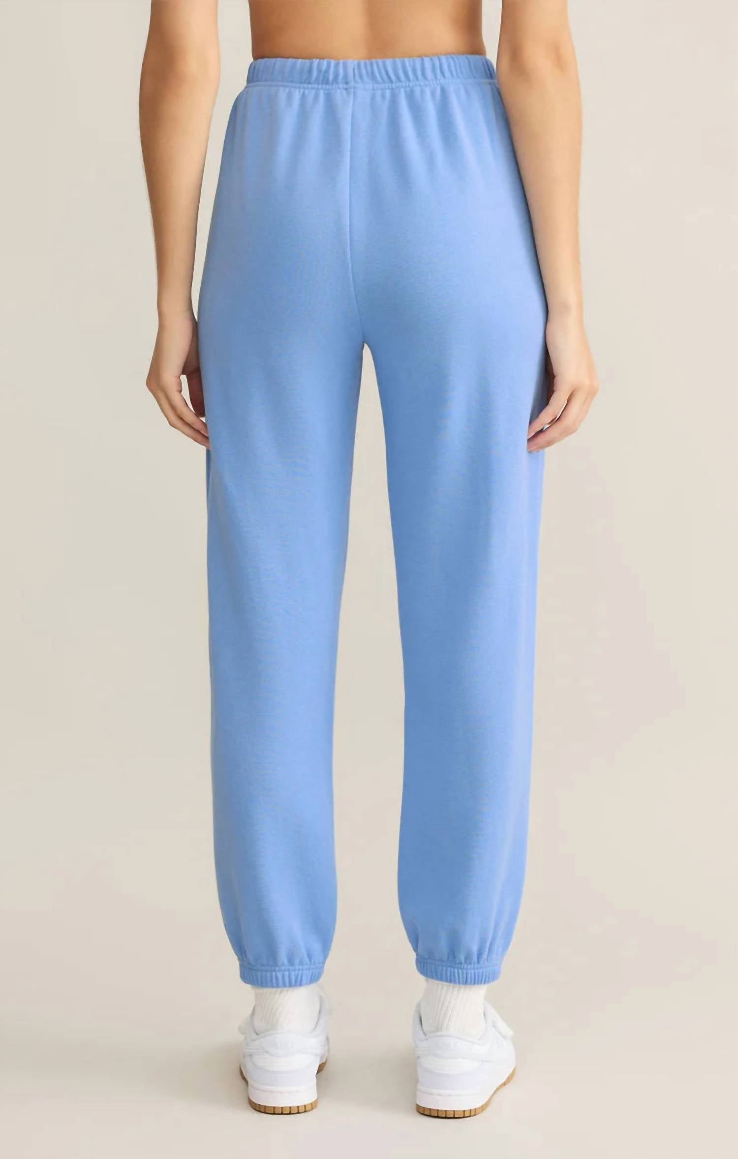 Essas corredoras descoladas não precisam de academia. Disponível na serena tonalidade Blue River. Projetada para o máximo conforto. A calça jogger de cintura alta é confeccionada em fleece CVC de peso médio, composta por 60% algodão e 40% poliéster. O fecho pull-on garante um ajuste relaxado. Complementada por bolsos laterais e uma silhueta reta na altura do tornozelo. Com 69 cm de comprimento interno, a calça jogger de ajuste confortável é ideal para uso diário.
