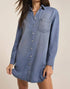 Introducing the Dover Chambray Dress by Z Supply, a stunning mini dress in Sun Bleached Indigo that combines style and comfort. This long-sleeve dress features a collared neckline with a button front closure, crafted from 100% chambray Tencel for a midweight, soft feel. It boasts a flattering curved hem and a practical chest pocket, ideal for casual outings. Care for this piece is simple: machine wash cold on a gentle cycle and hang to dry.
