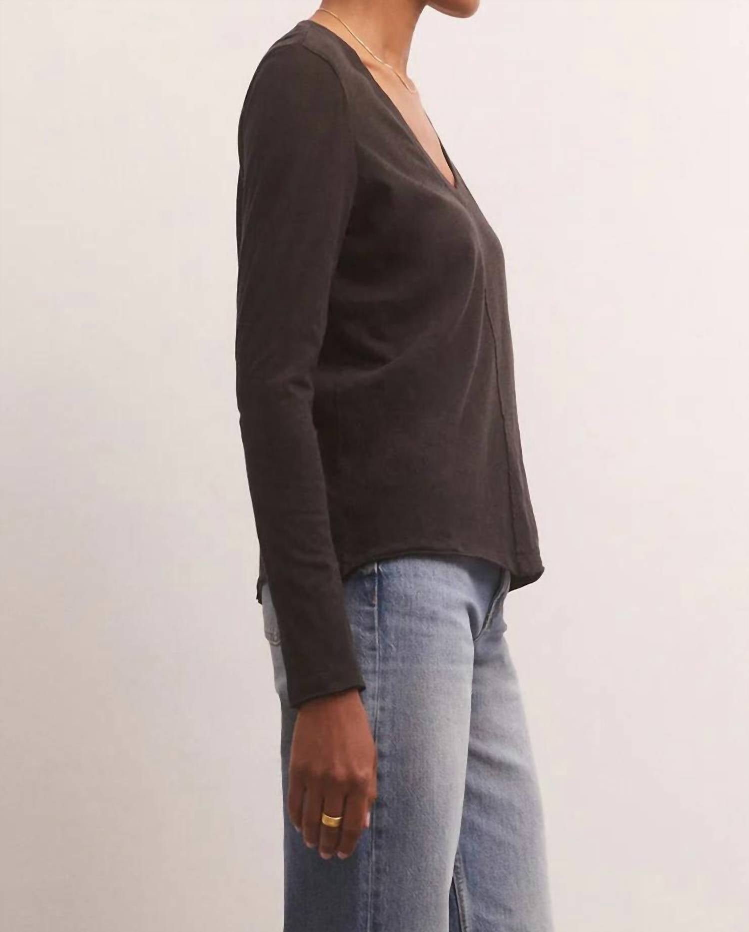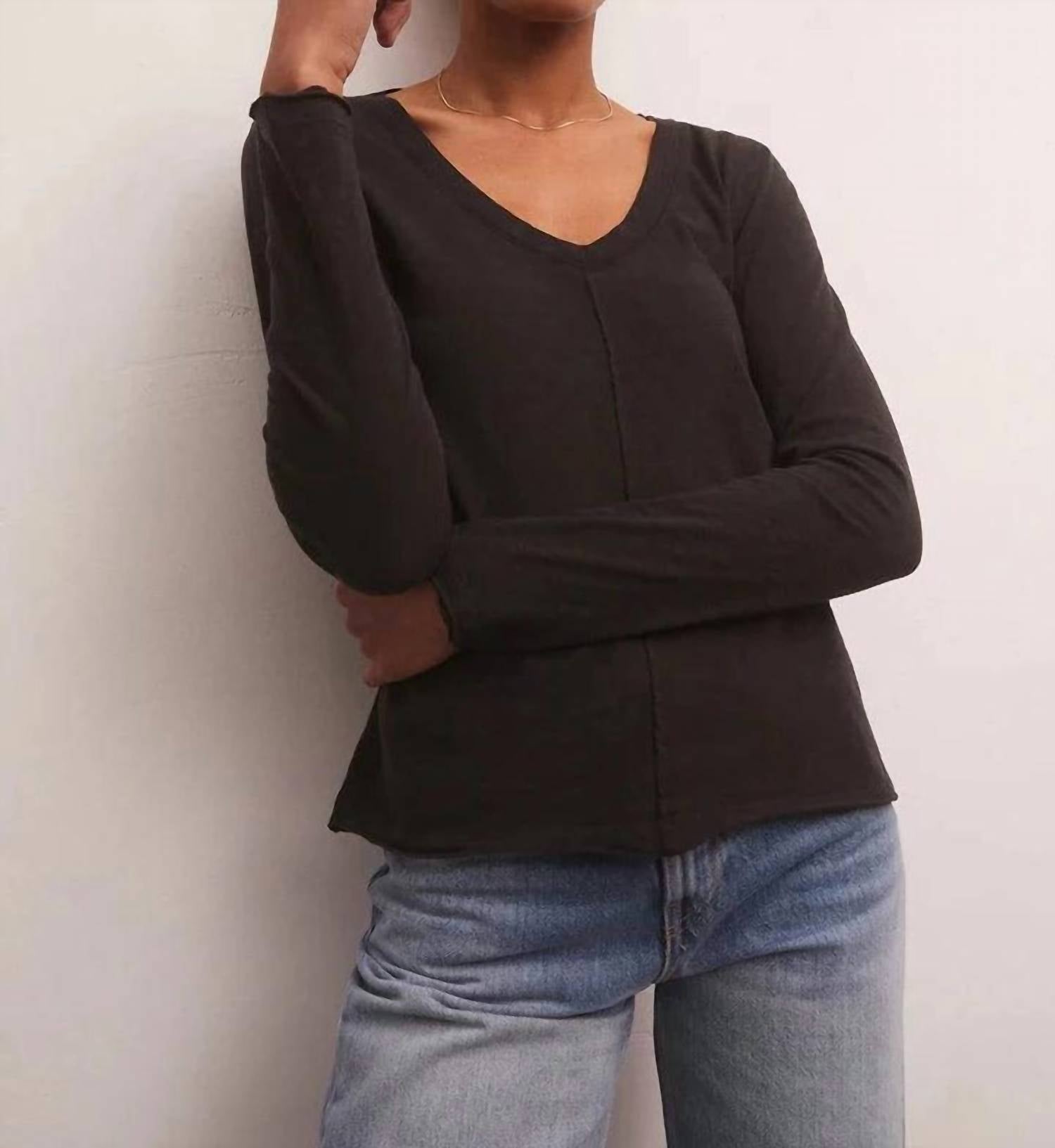 A camiseta de manga comprida perfeita para combinar com praticamente tudo. Camiseta de manga comprida Dream Slub. Confeccionada em nossa malha Cotton Slub Jersey, que tem aquele toque de usado que ela tanto procura, esta gola V relaxada apresenta mangas mais justas, costura central na frente e nas costas e detalhes na barra sem acabamento para um visual ainda mais charmoso. Esta blusa é a nova melhor amiga do jeans. Composição do tecido: 100% algodão