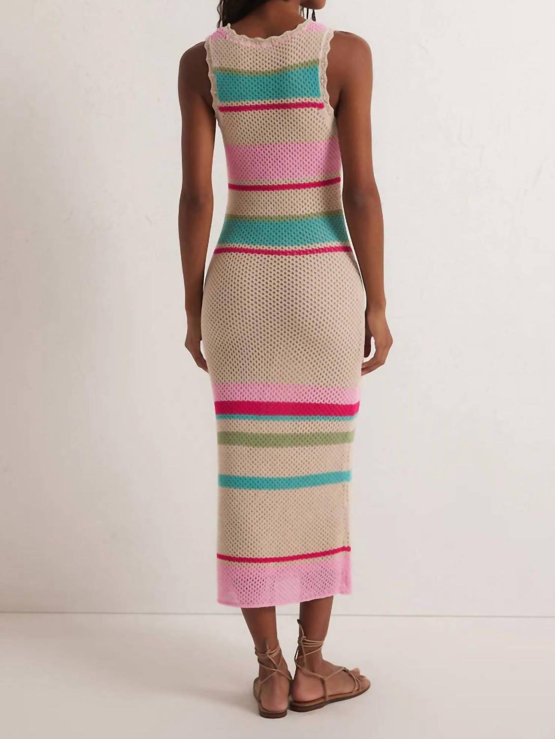 O Vestido Suéter Listrado Ibiza da Z Supply é o complemento perfeito para o seu guarda-roupa de verão, com decote redondo sem mangas e acabamento em renda elegante. Confeccionado em malha leve de crochê 100% algodão e com corte justo ao corpo, promete conforto e estilo para qualquer dia de praia. Este vestido midi multicolorido com estampa listrada oferece praticidade com seu fecho pull-on e tem 125 cm de comprimento a partir do ombro. Cuidados: Lavar à mão e secar na horizontal.