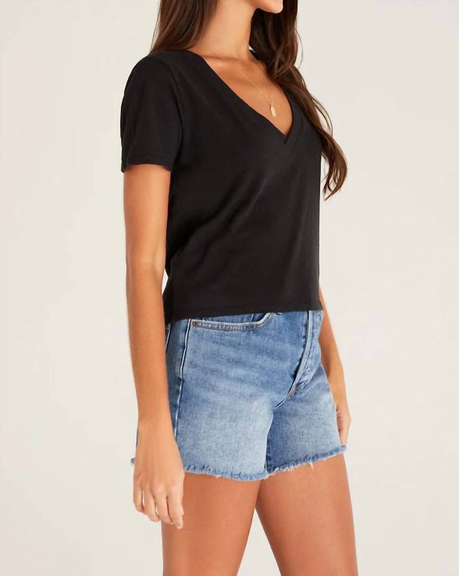 Não procure mais, você acabou de encontrar a camiseta perfeita! Decote em V mais largo. Caimento justo. Levemente cortado na cintura. 100% algodão. Lavar à máquina com água fria, virar do avesso, ciclo delicado, lavar com cores semelhantes, não usar alvejante, pendurar para secar, passar a ferro morno, se necessário. Vire do avesso e lave antes de usar.