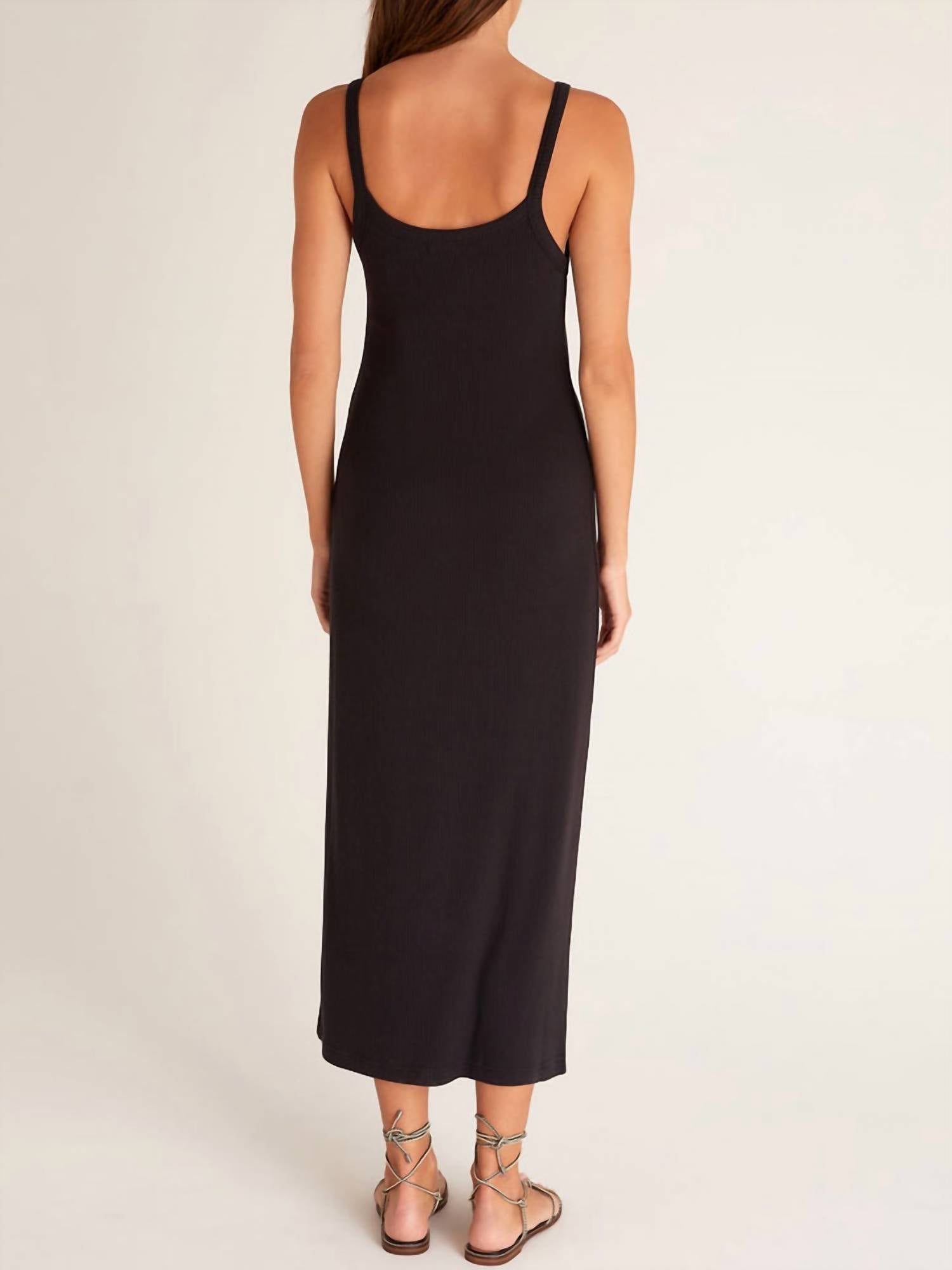 Basta adicionar slides ou mules e pronto. Feito em nosso tecido canelado estruturado. Comprimento midi. Sem mangas. Cor lisa. Estilo pull-over. 95% rayon, 5% elastano.